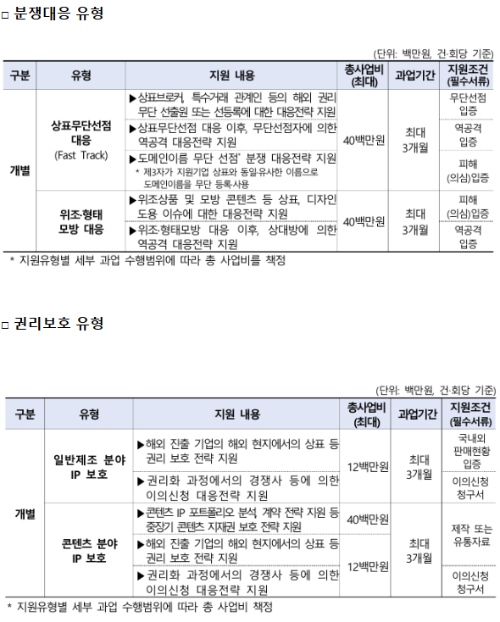 ㅇ 지원유형 : 분쟁 상황에 따라 분쟁대응과 권리보호로 구분