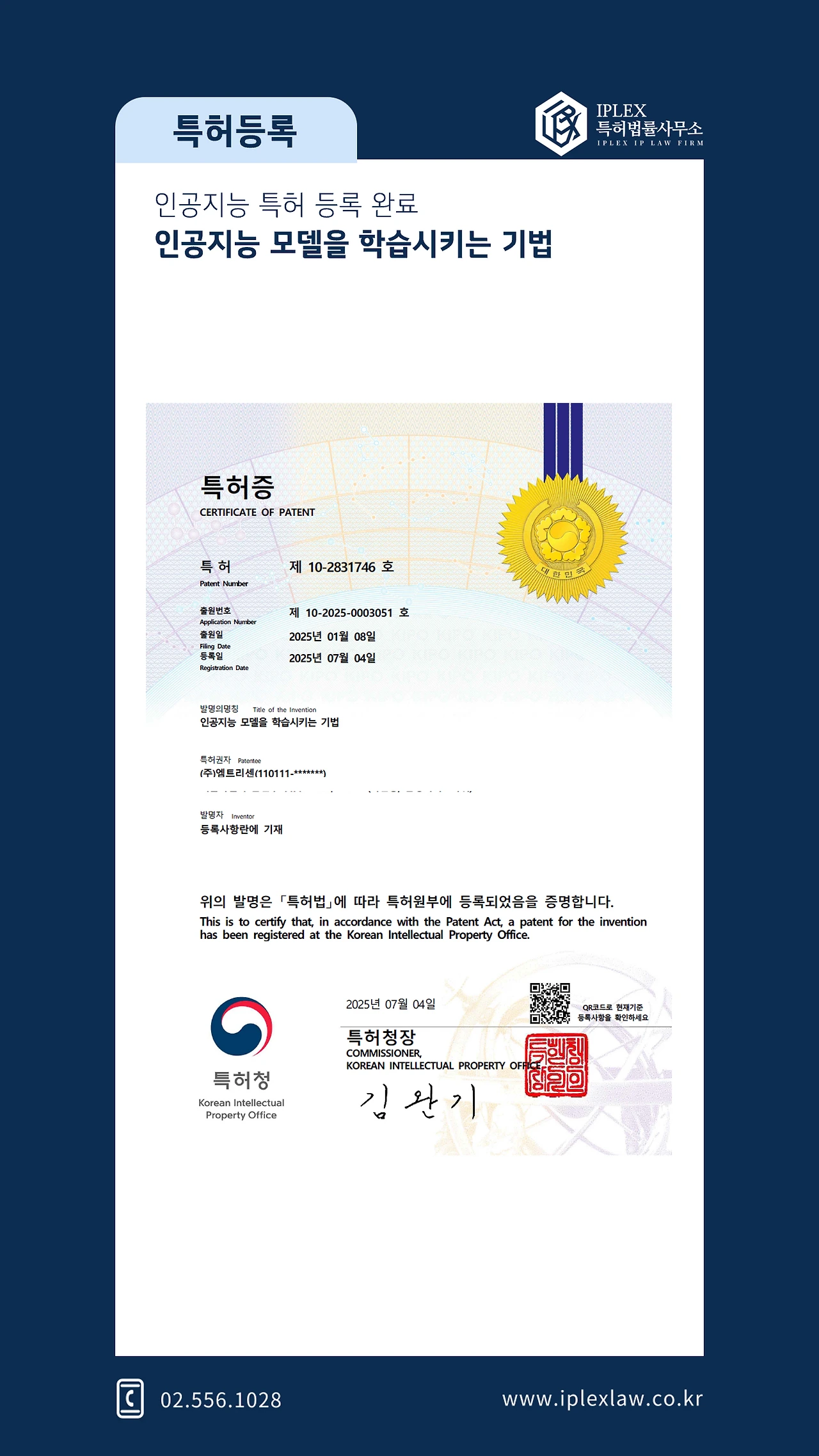 이번 특허는 AI 딥러닝 기술의 핵심 중 하나인 Guided Attention 기법을 개선한 학습 구조로, 엠트리센이 축산 현장에 적용 중인 DeepEyes, DeepScan, DeepFeed 등 제품의 지능화에 핵심 역할을 합니다. 해당 특허는 아이피렉스 특허법률사무소의 전문 자문을 통해 성공적으로 출원 및 등록되었습니다.