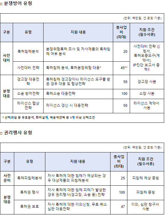 ㅇ 지원유형: 분쟁 상황에 따라 분쟁방어와 권리행사로 구분