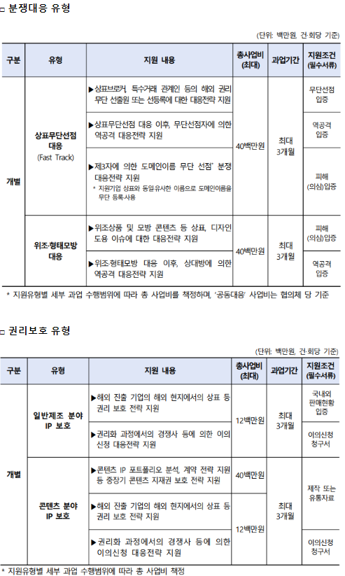 ㅇ 지원유형 : 분쟁 상황에 따라 분쟁대응과 권리보호로 구분