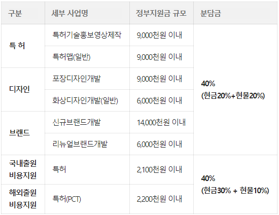 * 단, 제품디자인개발 및 목업 연계 지원 시 정부지원금 일부 초과 가능