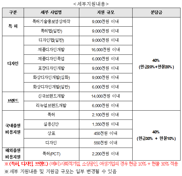국내(특허/실용신안/디자인/상표) 및 해외(특허PCT) 출원비용 지원사업