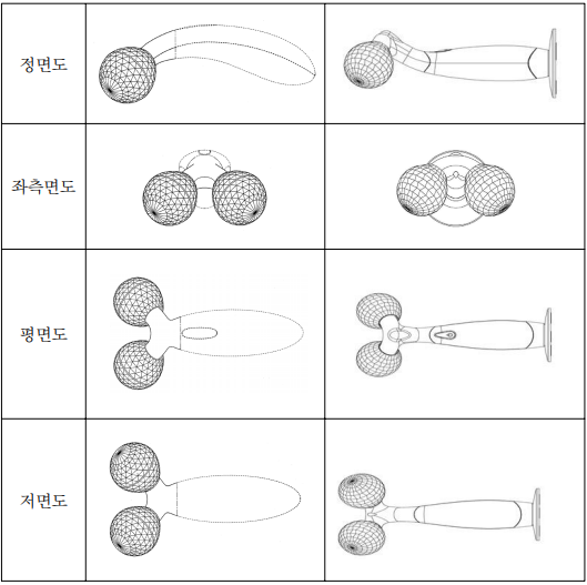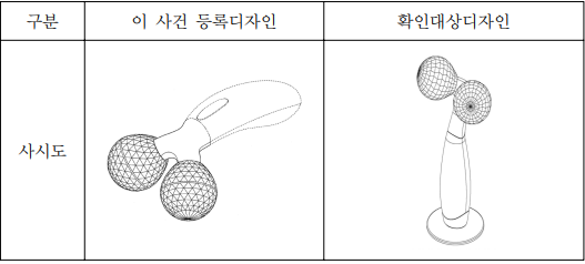 - 게다가 롤러부가 전체적으로 구형(球形)이거나 구형에 가까운 점은 얼굴이나 몸을 효과적으로 마사지하기 위한 대상물품의 특성이 고려된 것으로 보이므로, 공통점 ①은 물품의 기본적 형태이거나 그 기능을 확보하기 위한 불가결한 형상에도 해당한다.