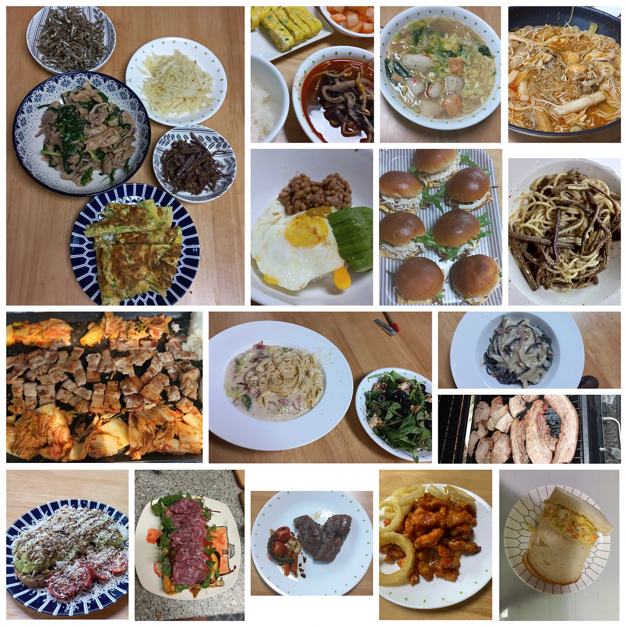 아이들은 밑반찬이 아무리 맛있어도 두 번 이상 내주면 잘 먹지 않는다. 매번 식탁에 새로운 메인 요리 하나 정도는 있어야 잘 먹는다. 주로 하는 요리는 돼지고기 볶음, 닭볶음탕, 소불고기, 김치찜, 계란말이 등이고 반찬이 마땅치 않을 때는 파스타나 국수 같은 면요리 혹은 샌드위치를 만들어 준다. 가끔 저녁 준비 하기 피곤한 날은 퇴근길에 족발이나 순댓국, 초밥, 치킨을 포장해 가서 먹기도 한다.