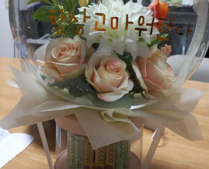 "형님~꽃 잘 받았어요. 너무 예뻐요~현금도 정말 감사해용~호호호"