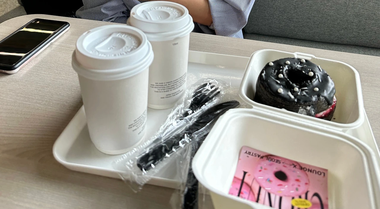 남편과 보쌈을 먹었다. 그리고 커피를 마시러 갔는데 남편이 들고 온 쟁반 안에는...
