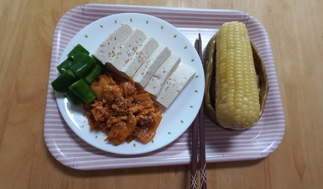 점심에는 시장에서 사 온 따끈하고 보드라운 두부와 볶은 김치, 옥수수를 먹었다. 마트에서 파는 두부와는 차원이 다른 시장표 손두부, 며칠 전 한우를 먹을 때만큼이나 행복했다.