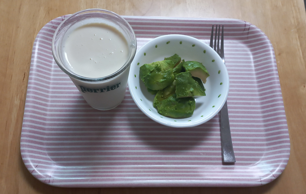 글쓰기에 집중하다 보니 오후 세시였다. 생리가 시작돼 그런지 식욕이 좀 떨어졌다. 콩국물 한잔과 아보카도 반개, 샤인머스캣 몇 알을 먹었다.