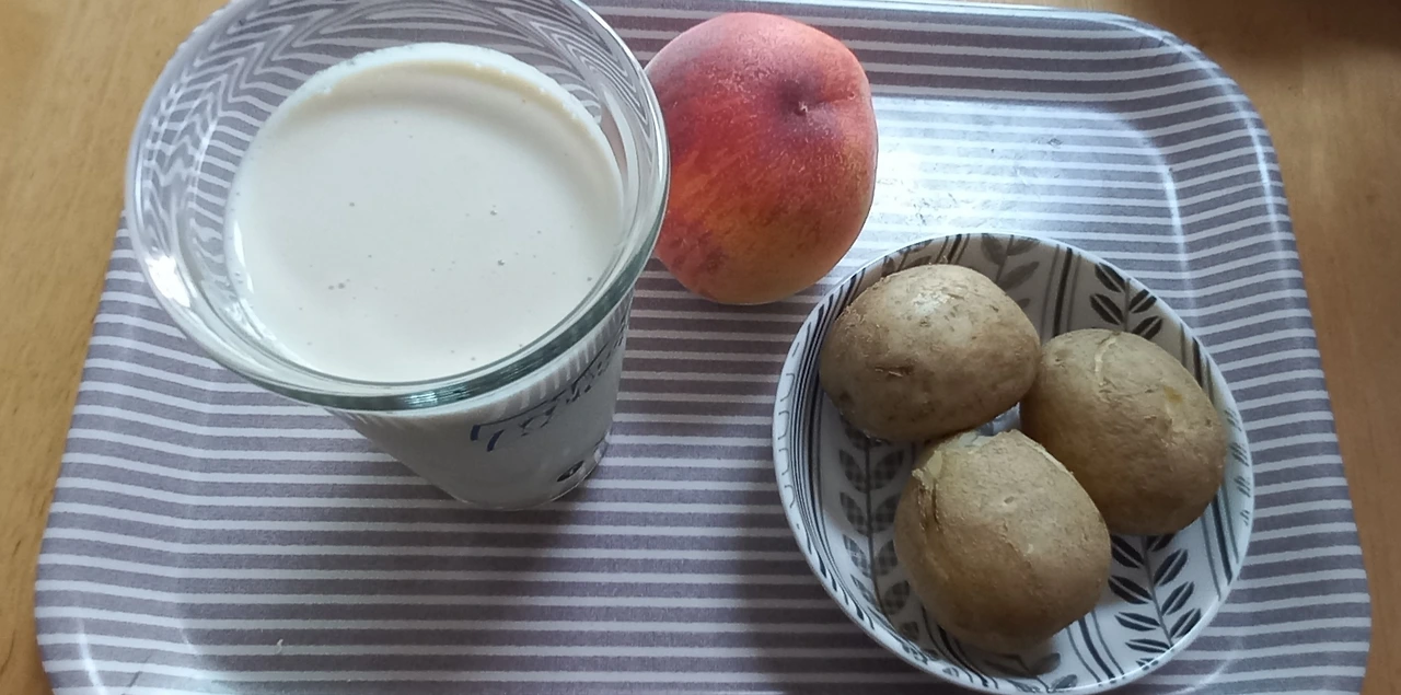 저녁에는 콩국물과 찐 감자, 복숭아를 먹었다.