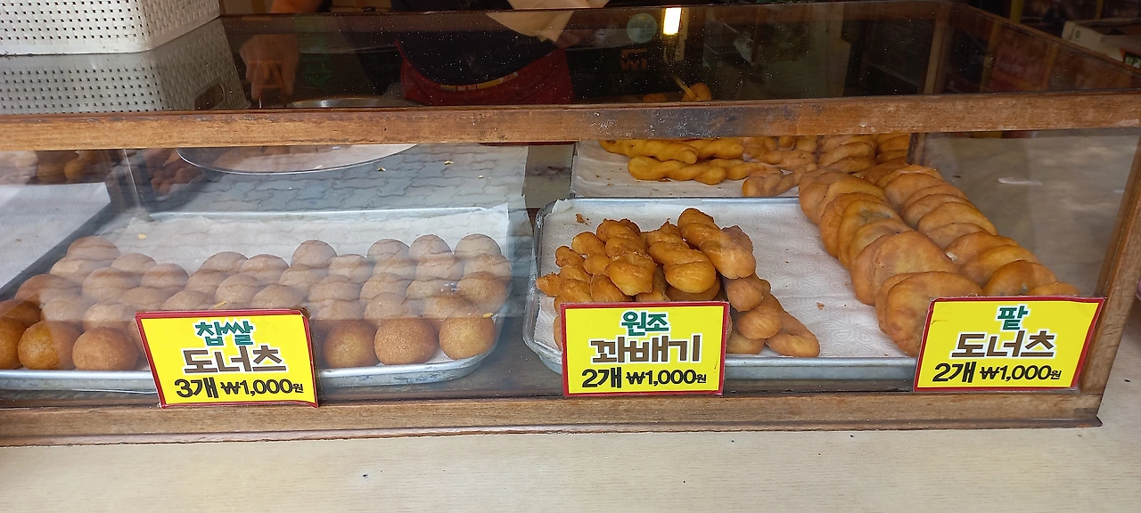 시장 끝자락에는 아이들이 좋아하는 꽈배기집이 있다. 꽈배기와 단팥도넛, 찹쌀도넛이 예쁘게 놓여있다. 종류별로 여러 개 사고 싶지만 건강을 생각해서 맛볼 정도만 샀다.
