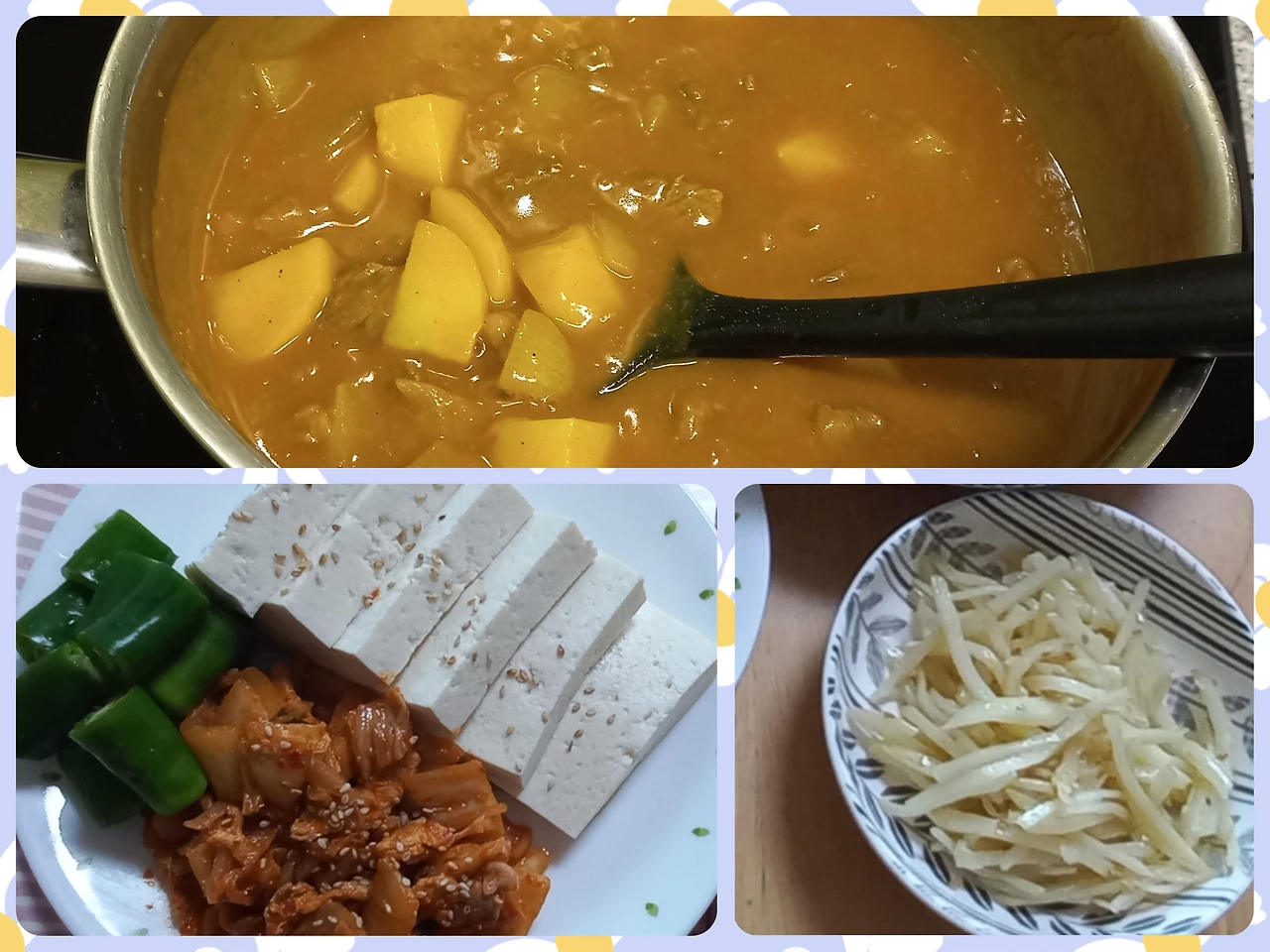 시장에 다녀오면 대형마트에 다녀온 날과 달리 기운이 난다. 방금 사 온 신선한 재료들로 뭔가를 만들고 싶은 의욕이 솟아난다. 오늘 시장에서 돌아오자마자 김치와 고기를 볶아 두부김치를 만들어 먹었다. 그리고 저녁에 먹을 카레와 감자볶음을 만들었다.