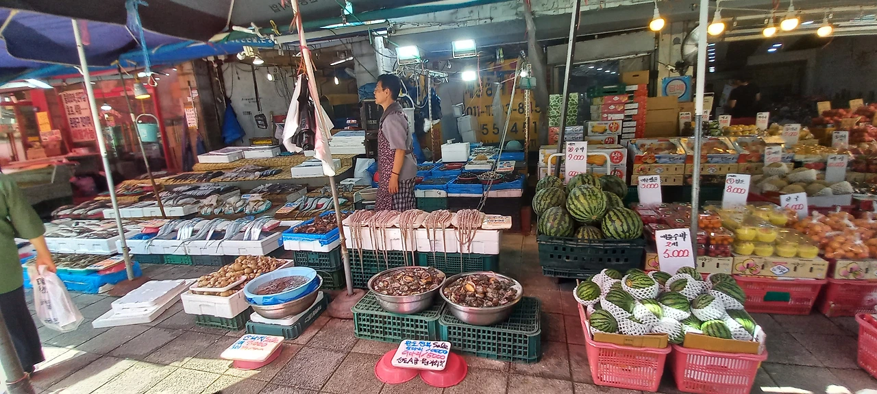 좌판에 놓인 생선들, 과일들이 내게 말을 거는 듯한 느낌이 든다.