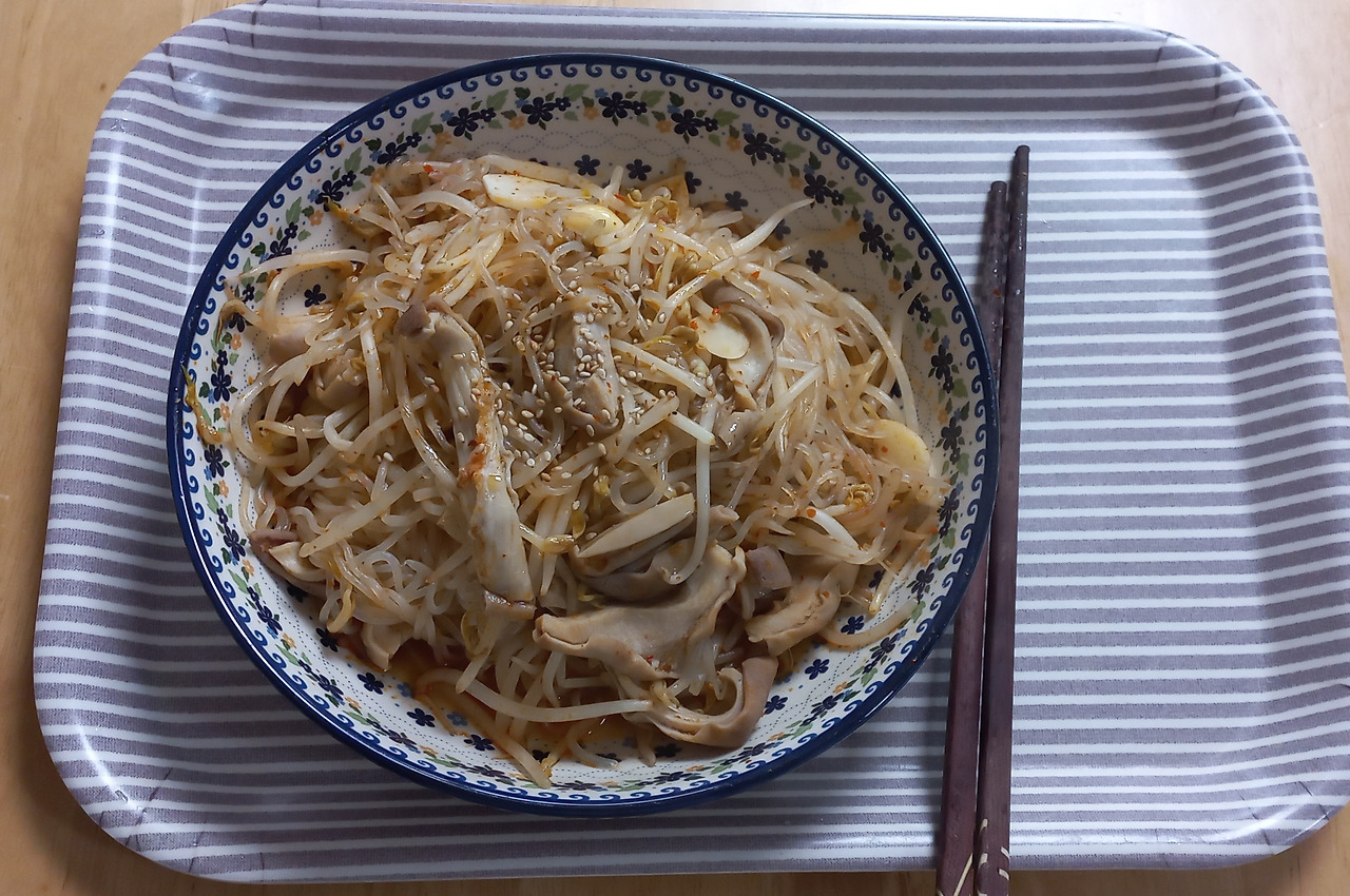 저녁 : 실곤약, 숙주나물, 돼지내장, 마늘을 마라소스와 간장으로 볶았다. 냉동실을 뒤져보니 언젠가 사놓은 삶은 돼지내장이 있어 사용했다. 되도록 냉장고 속 재료들을 이용해 요리를 만들려고 노력 중이다.