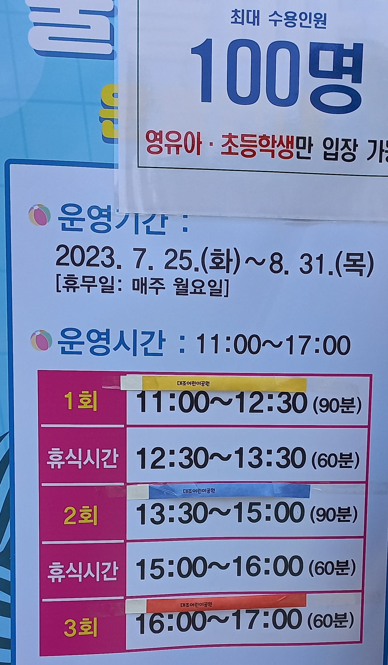 일요일 오전에 공원으로 물놀이를 하러 갔다. 막내딸과 즐겁게 뛰어놀 작정으로 물에 젖어도 상관없을 복장으로 갔다. 그런데... 초등학생까지만 입장이 가능하단다. 어른은 초등 미만 아이의 보호자만 들어갈 수 있단다. 내 딸은 초등 미만이라고 하기엔 너무 큰데... 아쉬웠다.