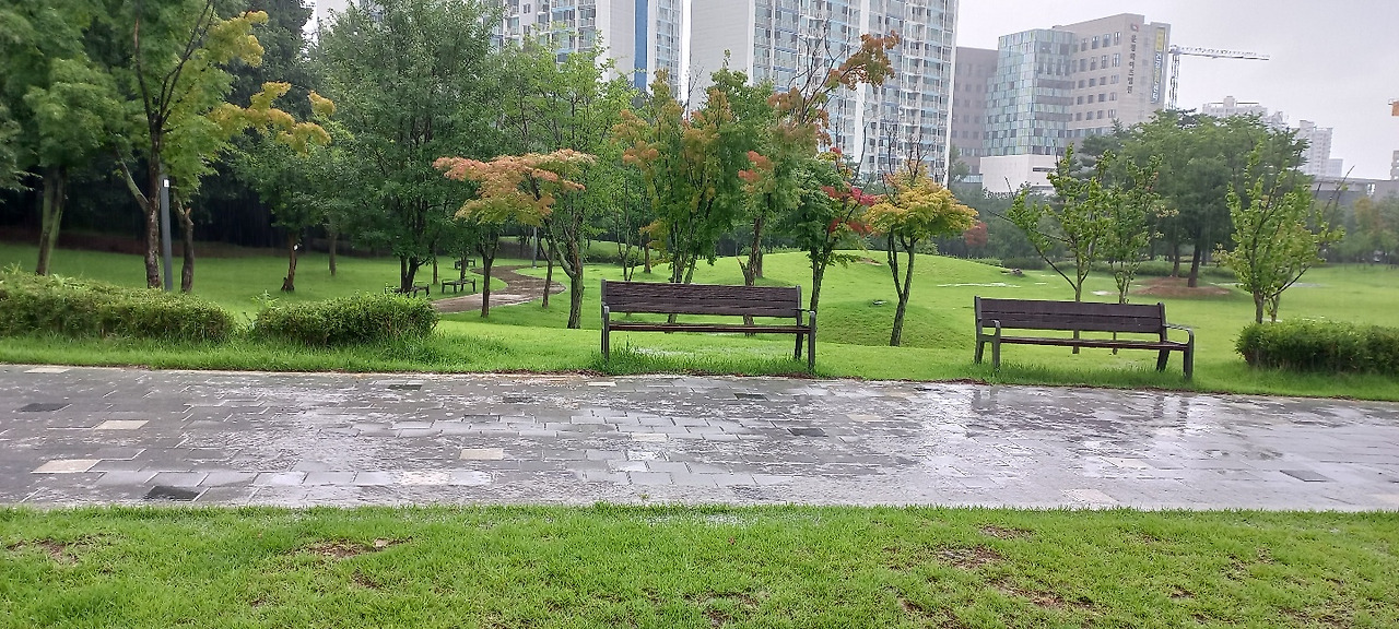 작은 나뭇잎들이 하늘에서 떨어지는 빗방울의 무게를 못 이겨 제각각 하나씩 아래로 살짝 내려갔다가 다시 올라오고 하는 모습이 마치 피아노 건반을 두드리는 모습 같아 보였다. 한참을 그 앞에서 보고 서 있었다.