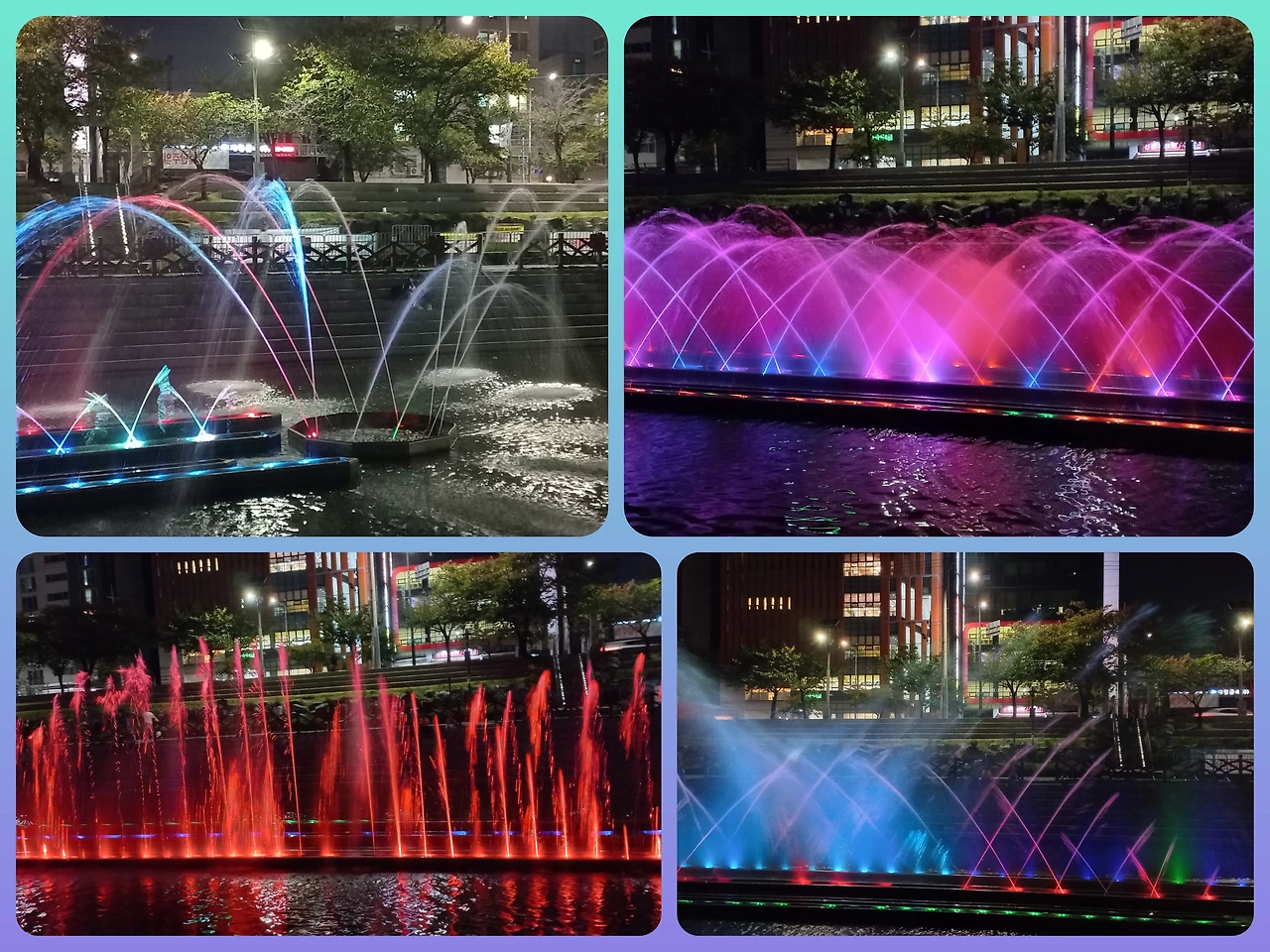 오랜만에 저녁을 먹고 산책을 했다. 집에서 이십여분을 걸어 불광천에 도착했다. 마침 분수쇼를 하고 있길래 자리를 잡고 앉았다. 쉼 없이 바뀌는 조명과 물줄기의 강약, 그것들이 만들어내는 눈앞의 무지개를 보며 탄성을 질렀다.