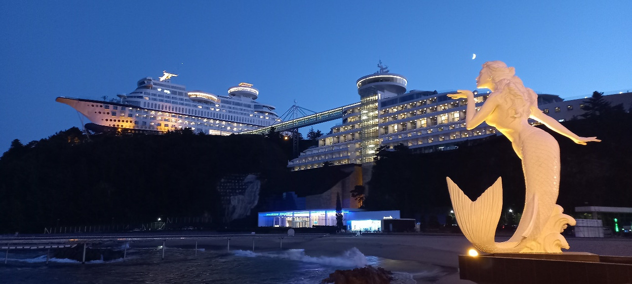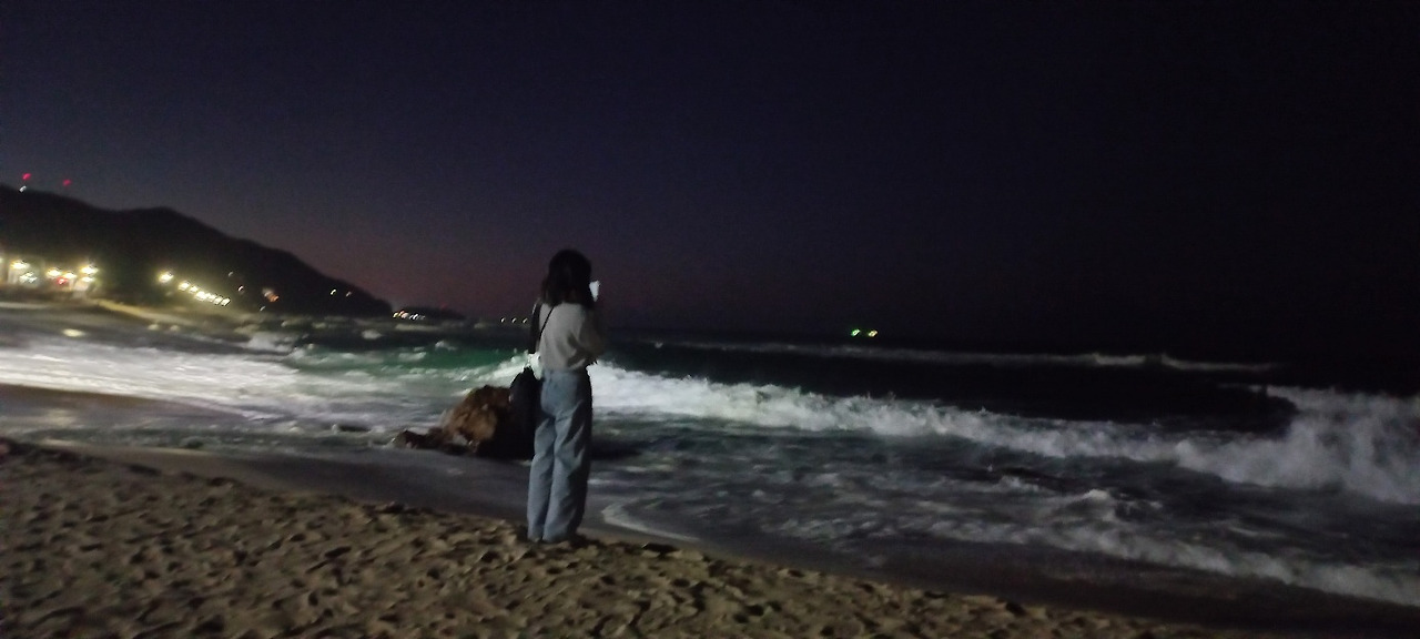 박물관에서 나와 다시 바닷가로 가니 어느새 하늘이 붉게 물들고 있었다. 커피숖에 들어가 차를 한 잔 마시고 나오니 이제 주변이 깜깜하다. 기차역을 향해 걸었다. 기차역 옆 해변에서 흔들의자에 앉아 밤바다를 바라보며 막내딸의 기분 좋은 수다를 들었다. 그리고 바다와 작별인사를 했다.