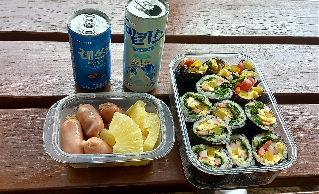 지난 월요일에 회사에 연차 신청을 하고, 딸아이의 학교에는 현장체험학습 신청을 했다. 나는 아침 일찍 일어나 김밥과 소시지, 과일을 넣은 도시락을 쌌다. 물은 무거우니 사 먹기로 하고, 캔음료 두 개와 과자 몇 봉지를 챙겼다.