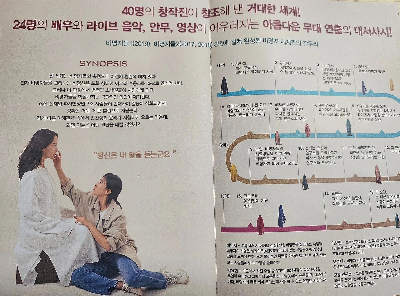 비명자들이라는 연극에 대해 검색을 해보니 2017년부터 8년에 걸쳐 1막, 2막, 3막으로 완성되는 공연이었다. 너무 무겁고 보기 힘든 내용일까 봐 걱정도 됐지만, 참석하겠다는 답장을 보냈다.
