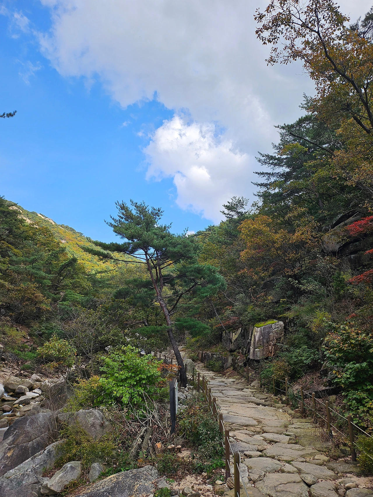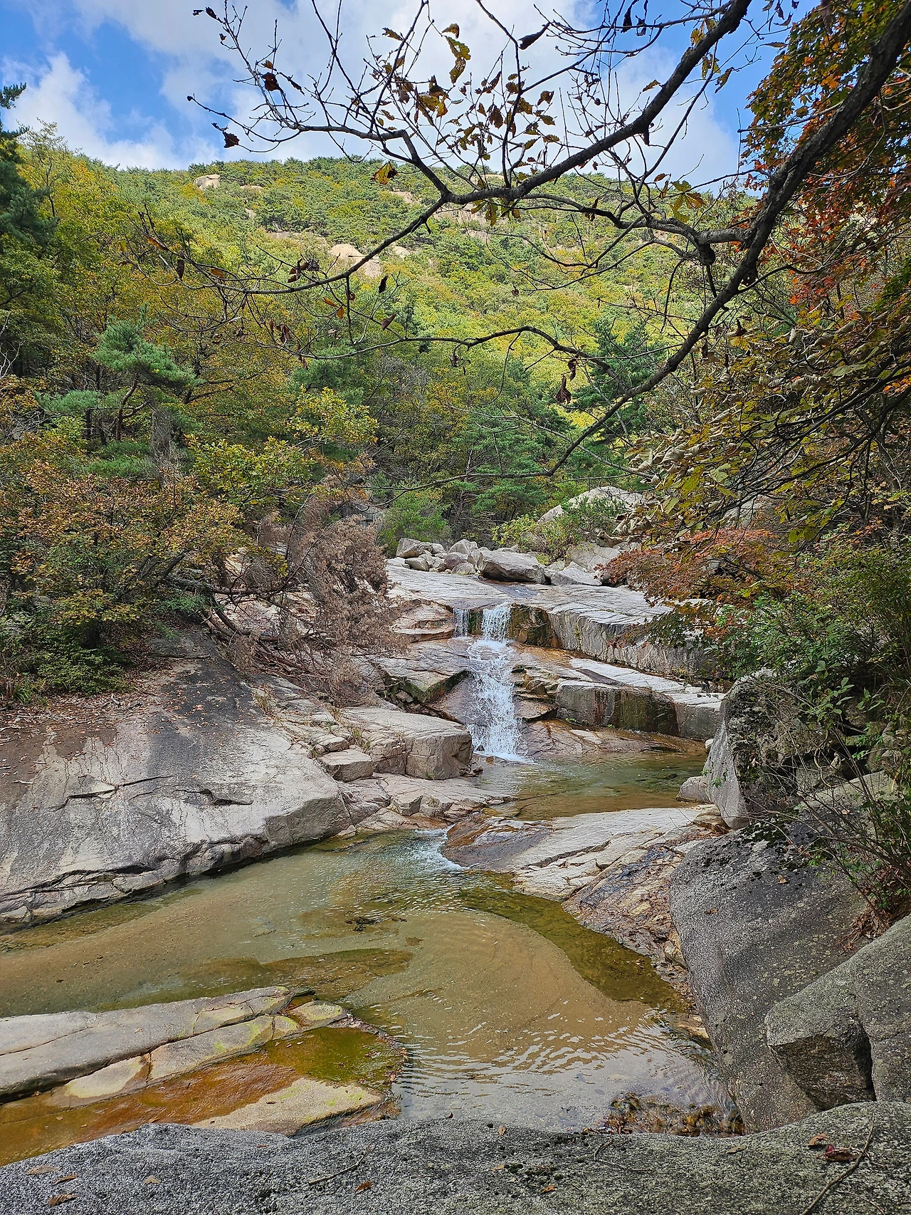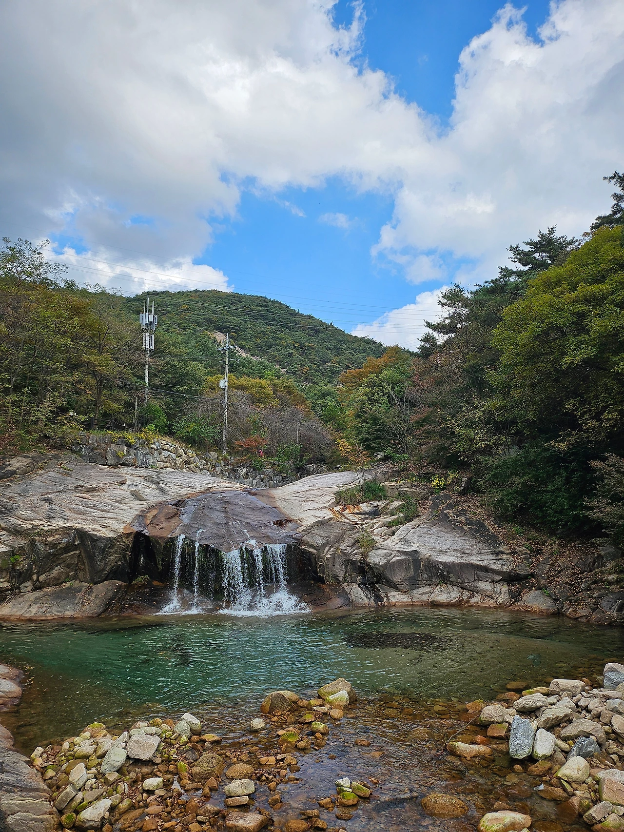 낮 12시쯤 송추 계곡에 도착했다. 계곡을 따라 난 길을 걸었다. 계곡을 막고 빽빽하게 들어선 식당들 때문에 보지 못했던 계곡의 풍경이 너무나 아름다웠다. 아스팔트로 포장된 길이 완만해서 걷기 편안했고 중간중간 숲 속으로 난 흙길을 걸을 때는 상쾌한 기분이 들었다.
