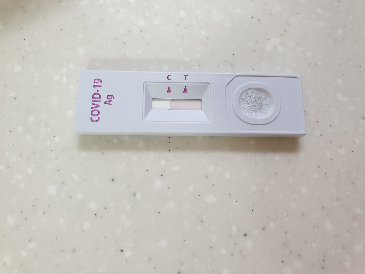 7. 코로나 키트에 4방울 떨어뜨리고 결과 기다리기
