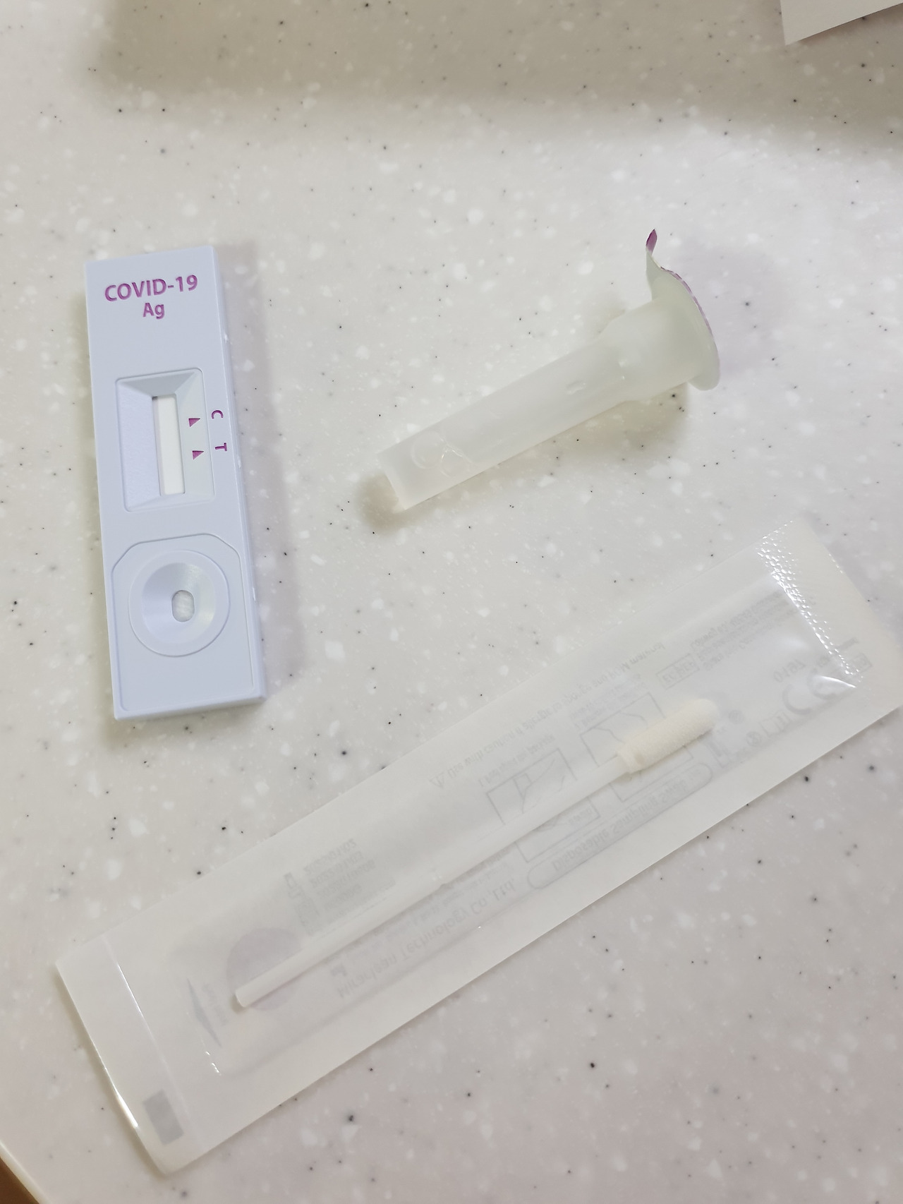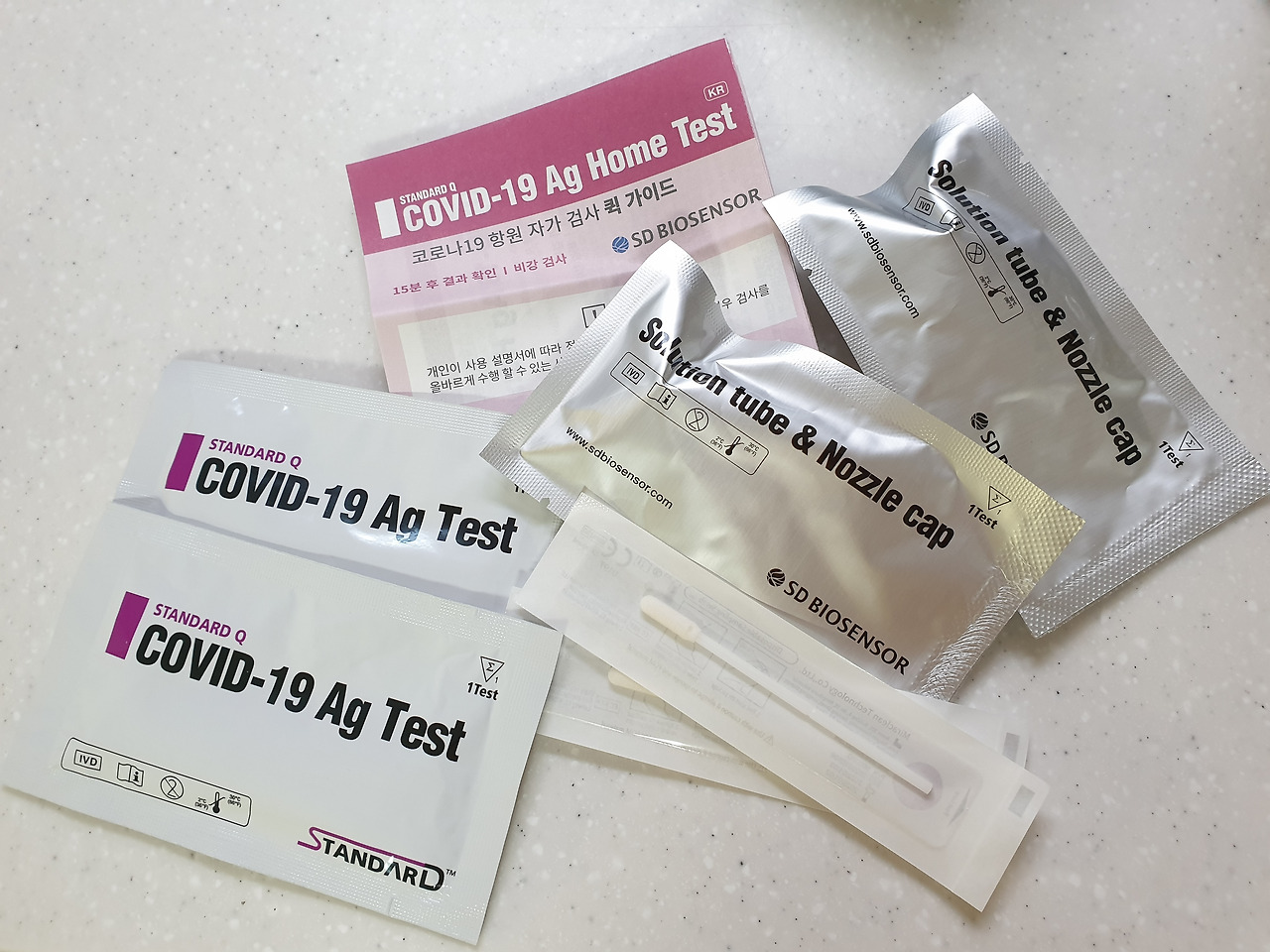 구성은 이러하다. 면봉, 테스트 키트, 튜브.