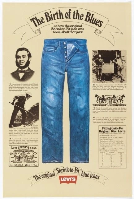 리바이스사는 천막 소재로 사용되던 데님과 그들이 특허권을 가진 리벳으로 노동자의 작업복을 만들게 되고, 주머니에는 501이라는 일련의 제품번호를 붙이게 되는데, 이것이 오늘날 청바지의 시초격이라 볼 수 있습니다. 즉 현재 청바지의 고유명사가 된 5포켓, 리벳, 레드택, 뒤 허리 가죽라벨 전부 리바이스의 아카이브 입니다.