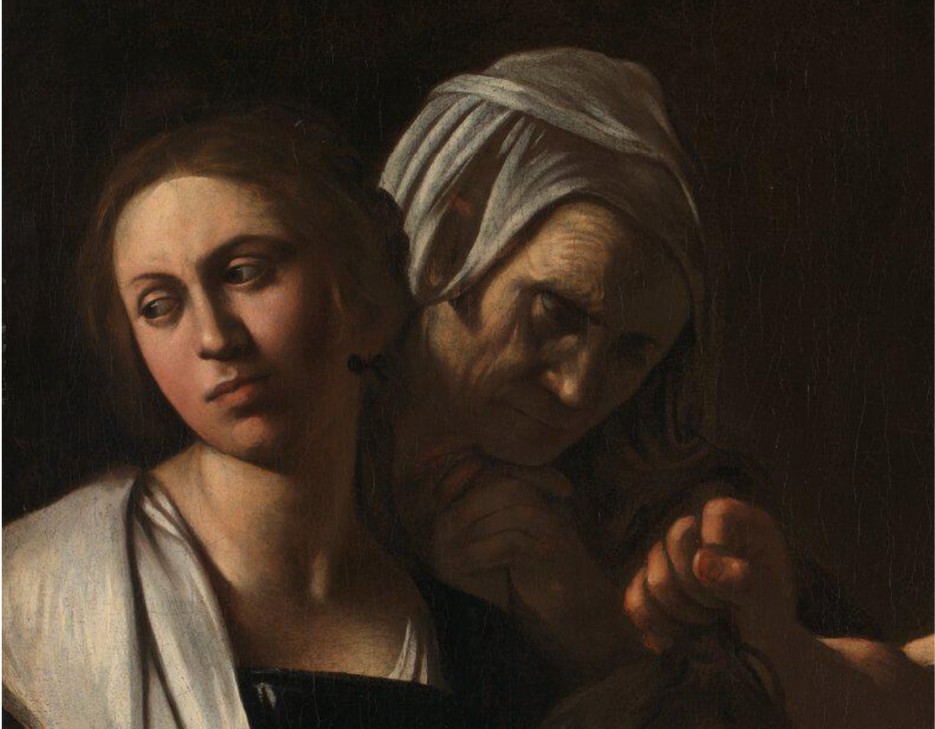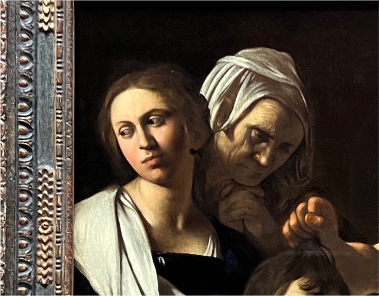 카라바조의 그림에서 노인은 종종 혜안과 지혜를 가진 인물로 표현되기도 한다. 하지만 젊고 아름다운 여성과 함께 있을 때, 아름다움은 곧 추해질 것이며 순수함 뒤에 가려진 악함을 표현하기도 한다. 이 그림에선 전자일까 후자일까 혹은 둘 다 일까?