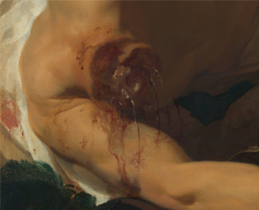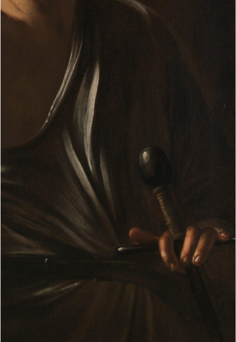 그림 속 에너지를 일관되게 이끌어나가는 디테일도 여럿 있는데, 그중 하나는 칼을 쥐고 있는 손.