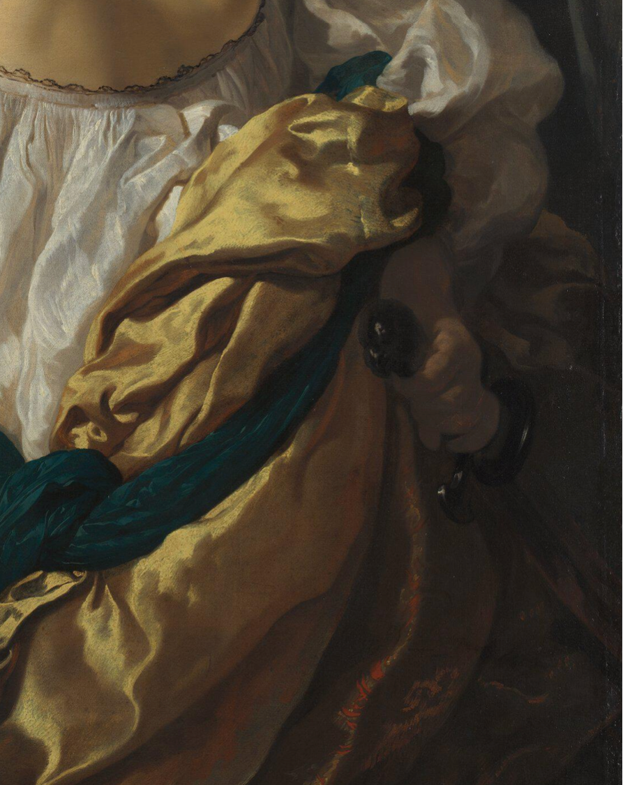 반면에 유디트는 지금 막 홀로페르네스의 목을 베었기 때문에 칼을 힘 있게 쥐고 있고, 그로 인해 긴장감이 전달된다.