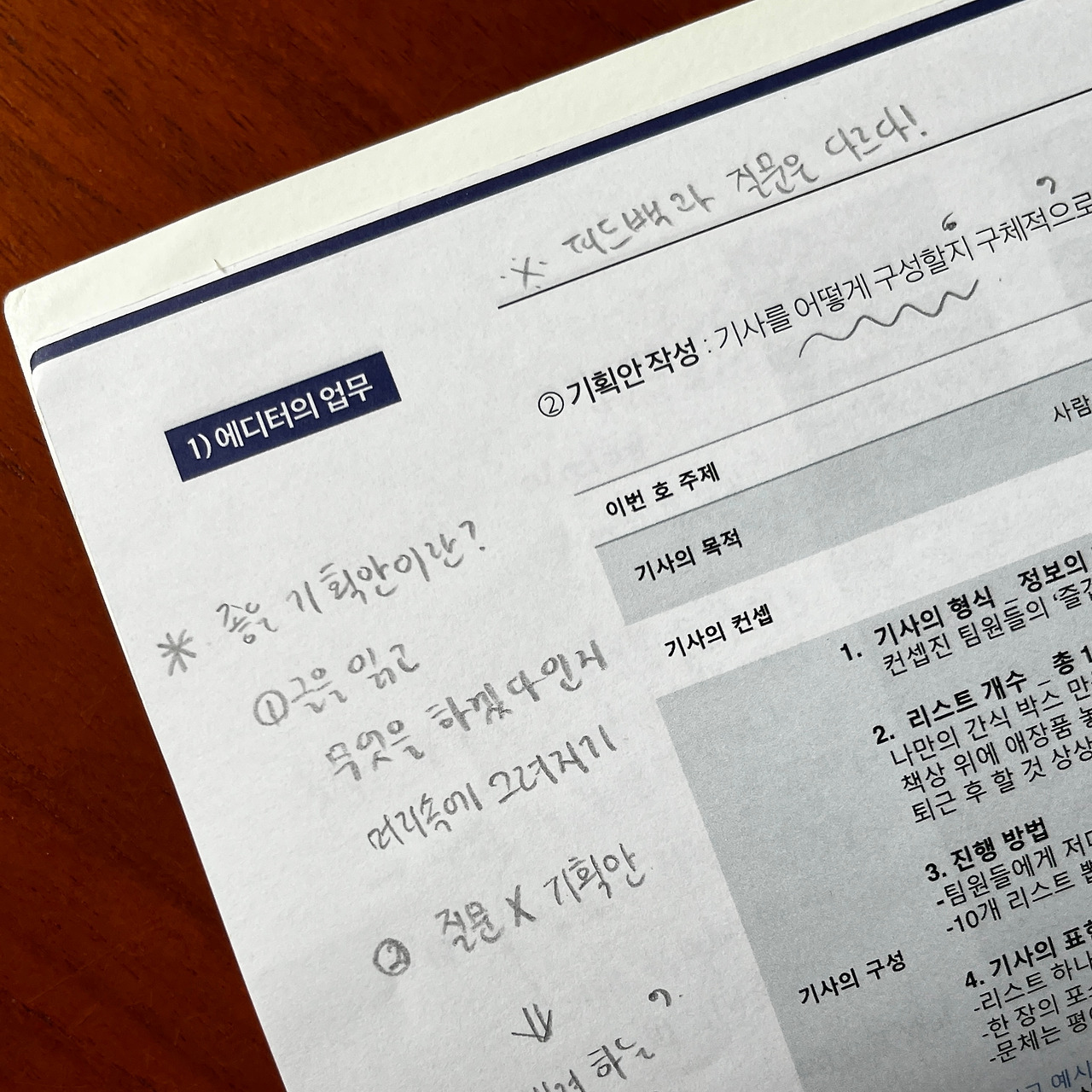 정해진 건 주제와 목적뿐. 제 역할은 세부 방안을 짜는 것이었어요. 컨셉진에서 진행하는 에디터 수업을 들은 적이 있습니다. 성격이 완전하게 비슷한 콘텐츠는 아니지만, 수업에서 배운 기획서 쓰는 법을 복기해 세부 방안을 잡았습니다.