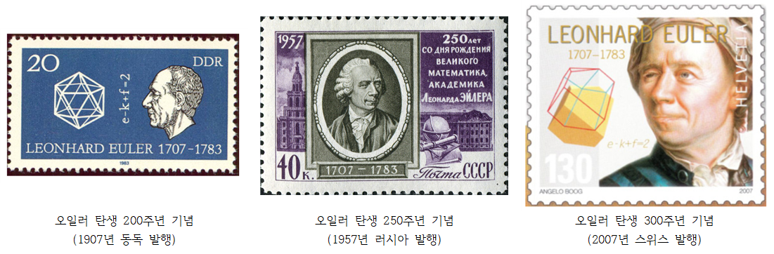 1907년 오일러 탄생 200주년을 기념하여 독일에서 기념우표를 발행했고요,