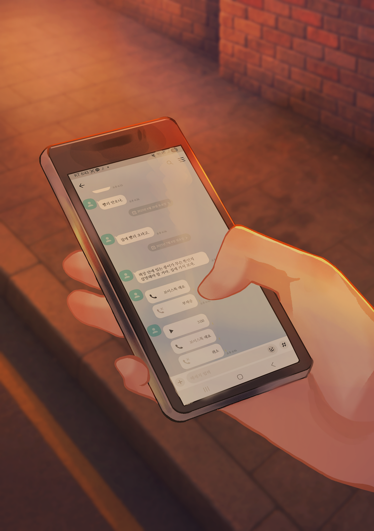 둘은 몇 시간 동안 같은 곳을 맴돌았다. 웃음소리 하나 내지 않은 채 한 명은 고양이를 쓰다듬다가 잠들고, 또 한 명은 멍하니 빈 곳을 바라봤다. 깊은 곳에서 깨어난 여자애는 청하가 보는 곳을 똑같이 바라봤다. 4글자로 적힌 곳 아래 미세한 글들이 쓰여 있었다. 하늘이 다시 붉은색으로 물들었다. 여자애가 무언가를 결심한 듯 보였다.