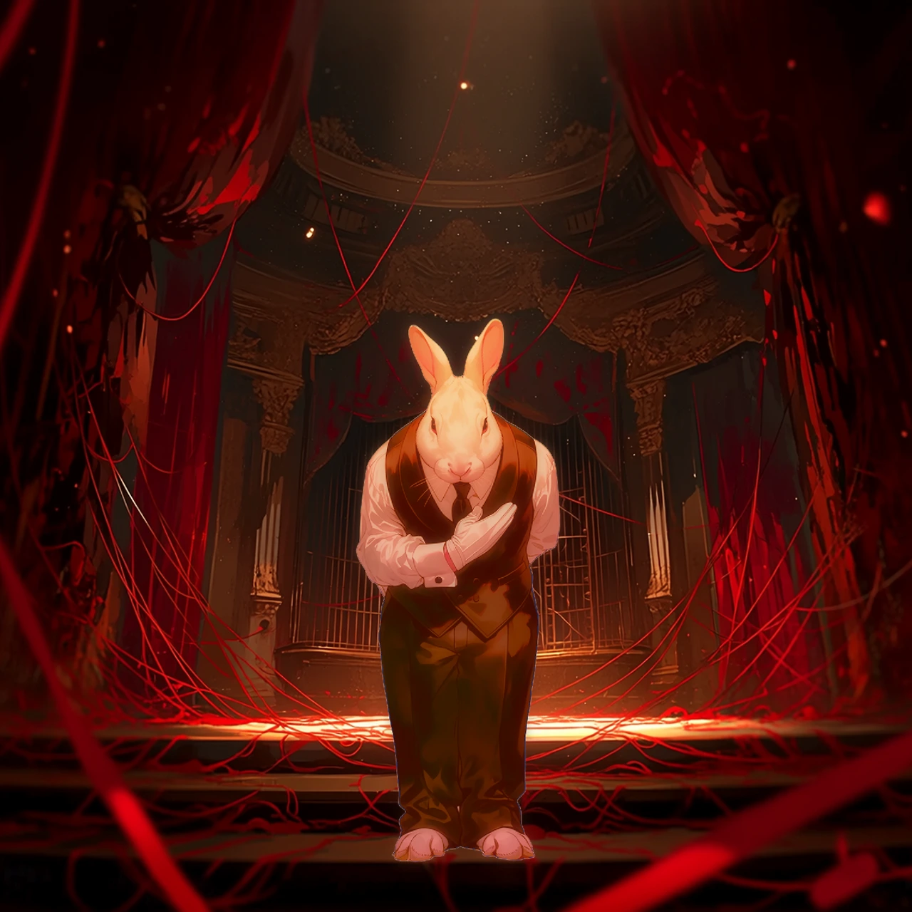 그것은 토끼였다. 그는 푸른색 정장을 입고 시계를 가리키며 활짝 웃는 표정이었다. 모두가 당황한 눈치였다. 당황은 곧 황당함으로 바뀌었고, 이내 모두가 입을 맞춘 듯 똑같은 말을 반복해서 외쳤다.