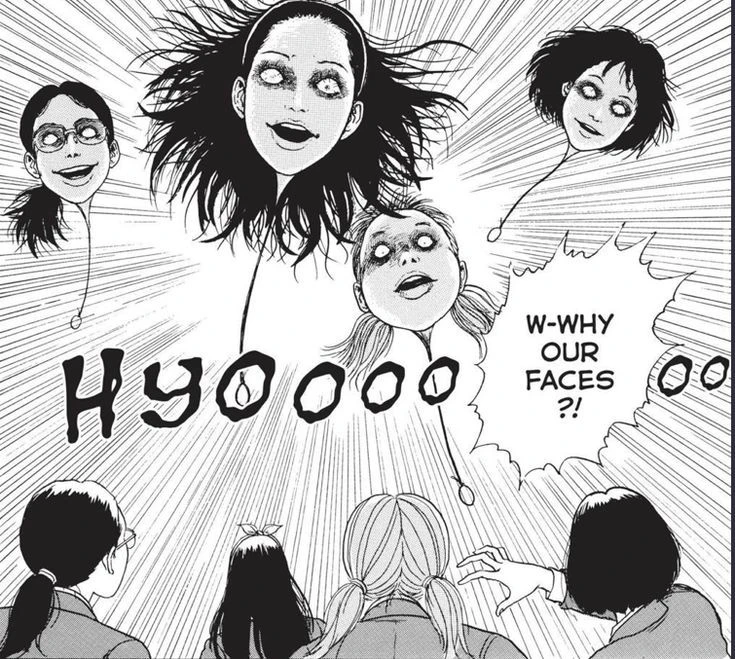 이토준지 특유의 섬뜩하면서도 인간 내면의 복잡함을 잘 표현하는 인물들로, 두 캐릭터의 이야기는 단순 공포를 넘어 심리적인 혼란과 충격을 선사합니다. 그의 작품 중 대중들에게 알려진 가장 유명한 캐릭터 터지 않을까 싶네요.
