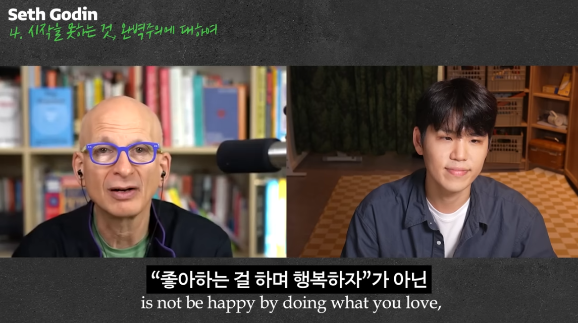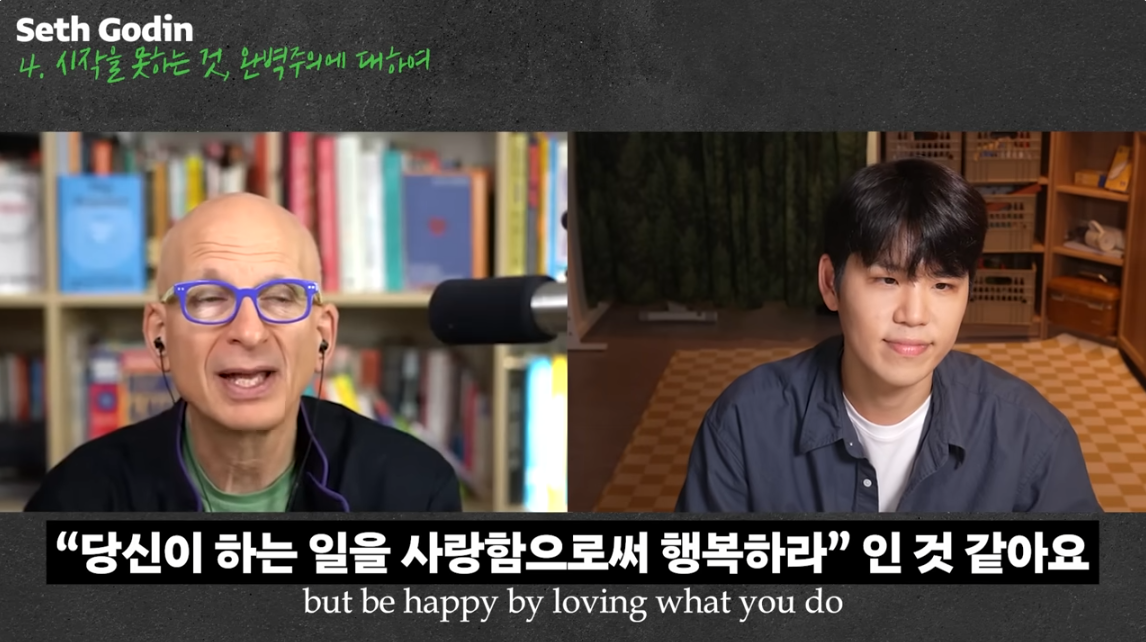 "당신이 하는 일을 사랑함으로써 행복하라"라는 세스고딘의 말에 많이 동의한다.