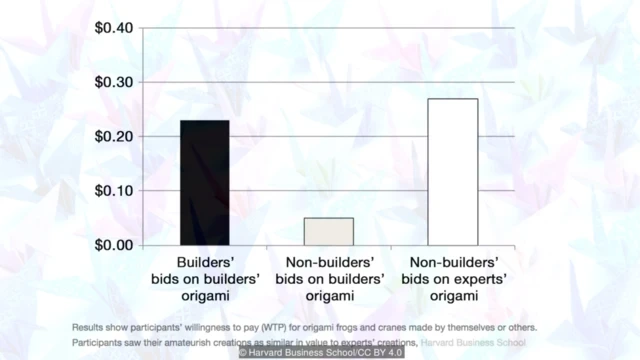 하버드 연구의 종이접기 실험에서도 자신들이 접은 종이 작품을 경매로 구매하게 했을 때 직접 만든 것은 다른 사람이 만든 것보다 더 비싼 값을 매겼다.