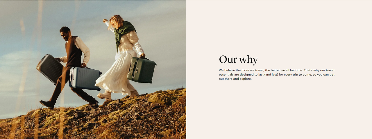 어웨이(Away)는 단순히 가방을 판매하는 브랜드가 아니라 여행의 모든 경험을 향상하기 위해 사려 깊은 제품을 만드는 회사다. 여행의 불편함을 최소화하고 고객이 여행에서 더 편리한 경험을 할 수 있도록 돕는 것이 그들의 목표다.