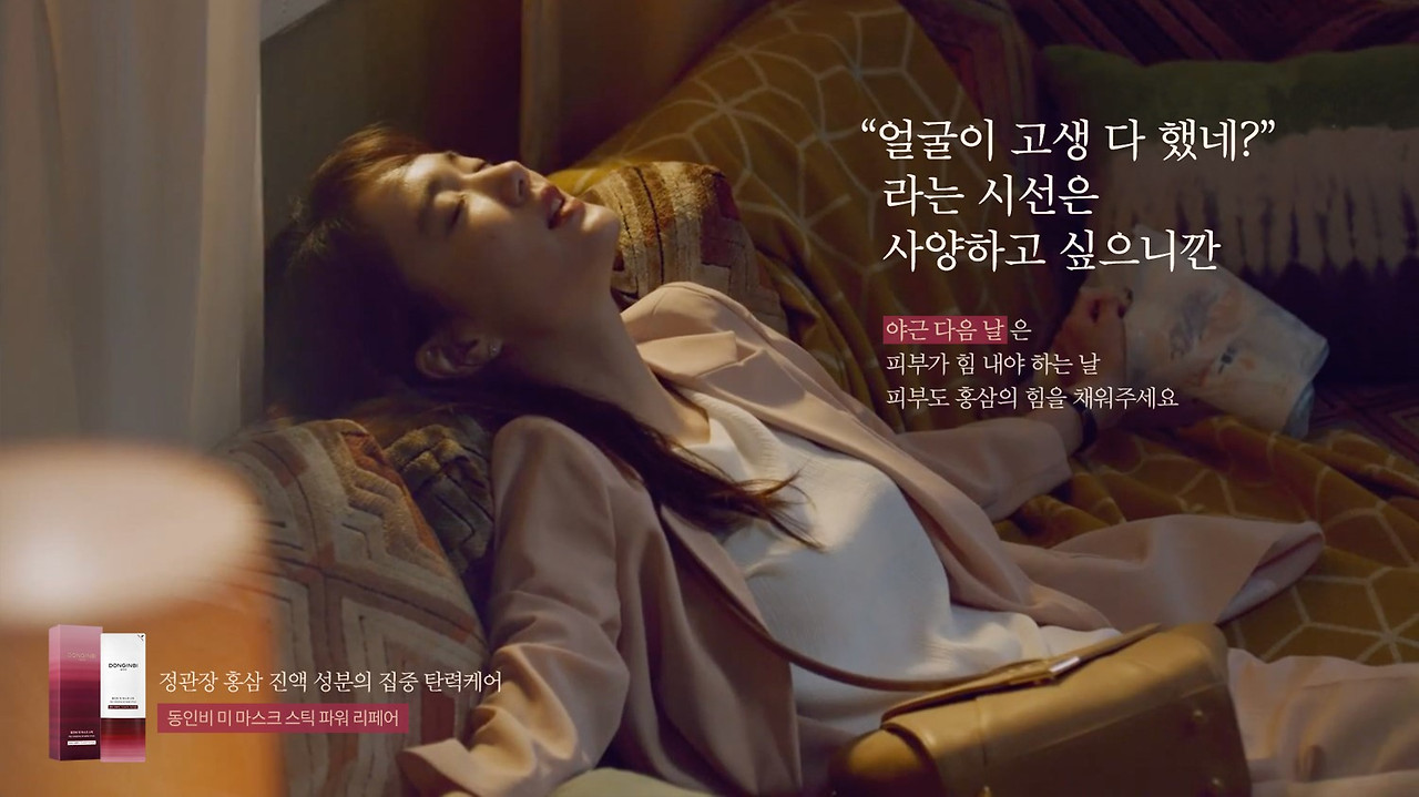 한국인삼공사는 홍삼을 활용한 다양한 제품을 판매한다. 우리가 알고 있는 건강식품뿐만 아니라 동인비라는 브랜드의 화장품을 만들고 판매한다. 홍삼은 실제 피부에 좋은 영향을 주는 것으로 알려져 있다. 한국인삼공사의 광고를 만들면서 아내에게 값비싼 홍삼 오일 제품을 선물했을 때 보습 효과가 좋다며 칭찬을 하기도 했다.