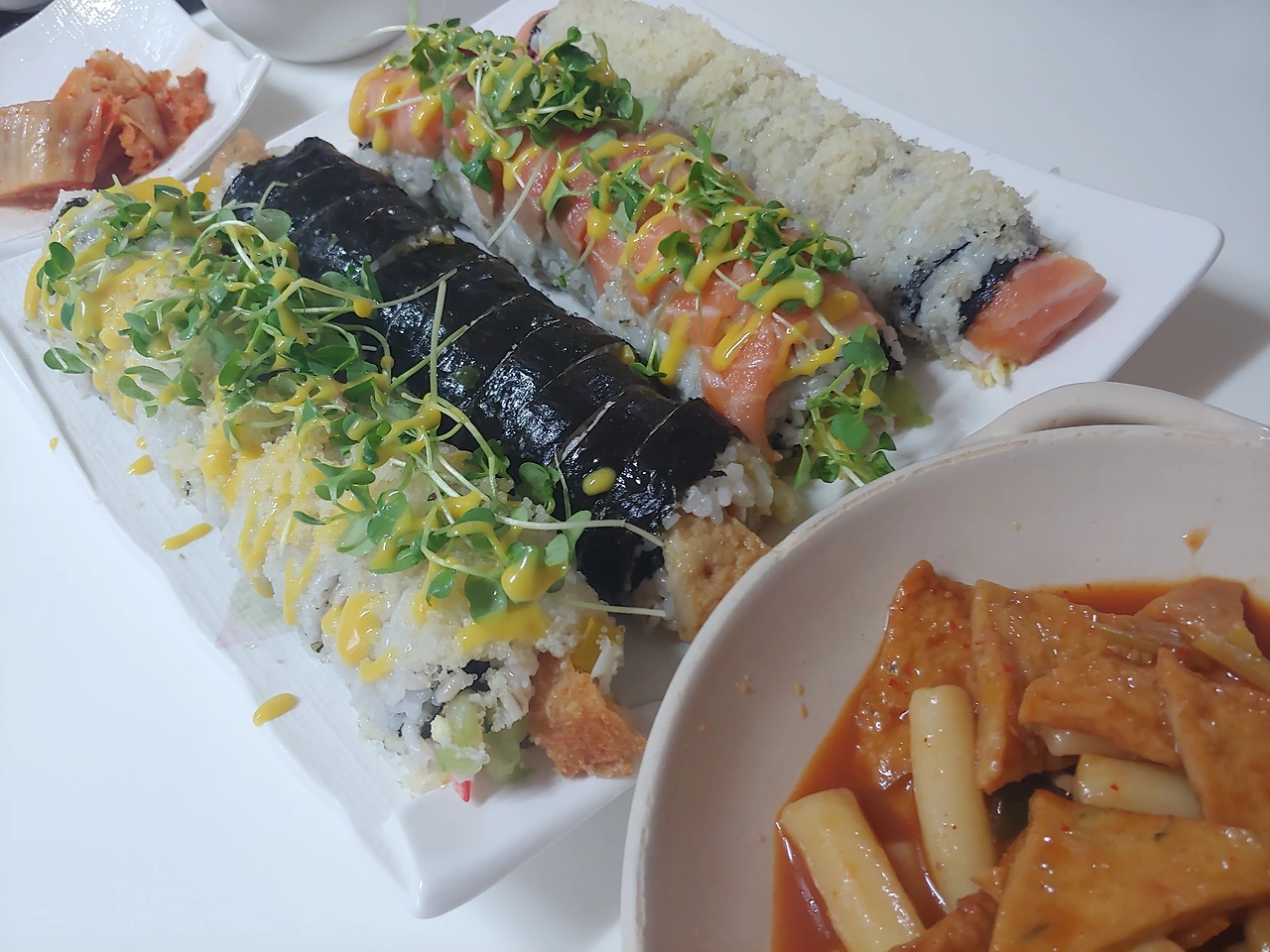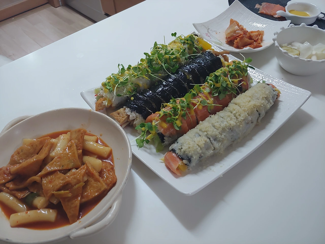 원룸을 나와 교회 학사에서 살았던 시절도 있었다. 명절기간 근무는 미혼을 중심으로 근무표가 짜일 수밖에 없었는데, 나처럼 고향에 못 내려가고 있는 학사의 청년들이 짠하여 만두를 빚고 전을 부쳐 각 호실마다 날라다 억지로 안겨주며 맛의 평가는 거부한다 하였으니 무대뽀가 맞다. 이 겁 없는 아가씨가 결혼 후 무대뽀 아줌마의 참맛을 보여주게 되었으니. 그 참맛의 메뉴, 바로 김밥 되시겠다.