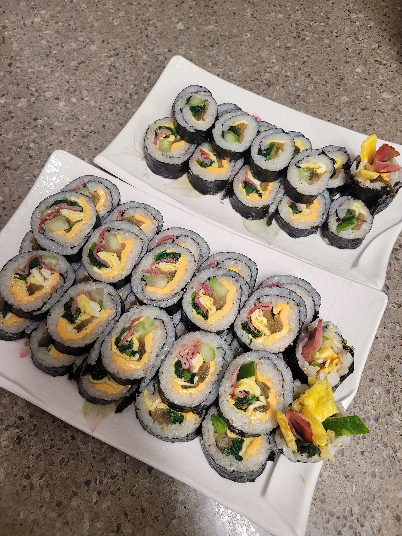 10년 넘게 효자 김밥을 싸면서 한 가지 바뀐 점이 있다면 김밥 속이다. 신혼의 김밥엔 즐거움과 친밀감을 담았다면 이젠 거기에 다둥이 엄마의 사심도 끼워 넣는다.