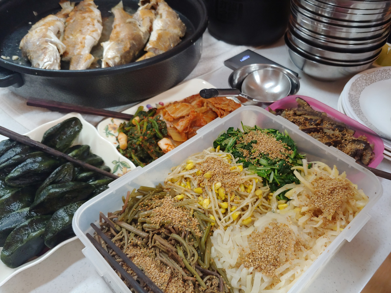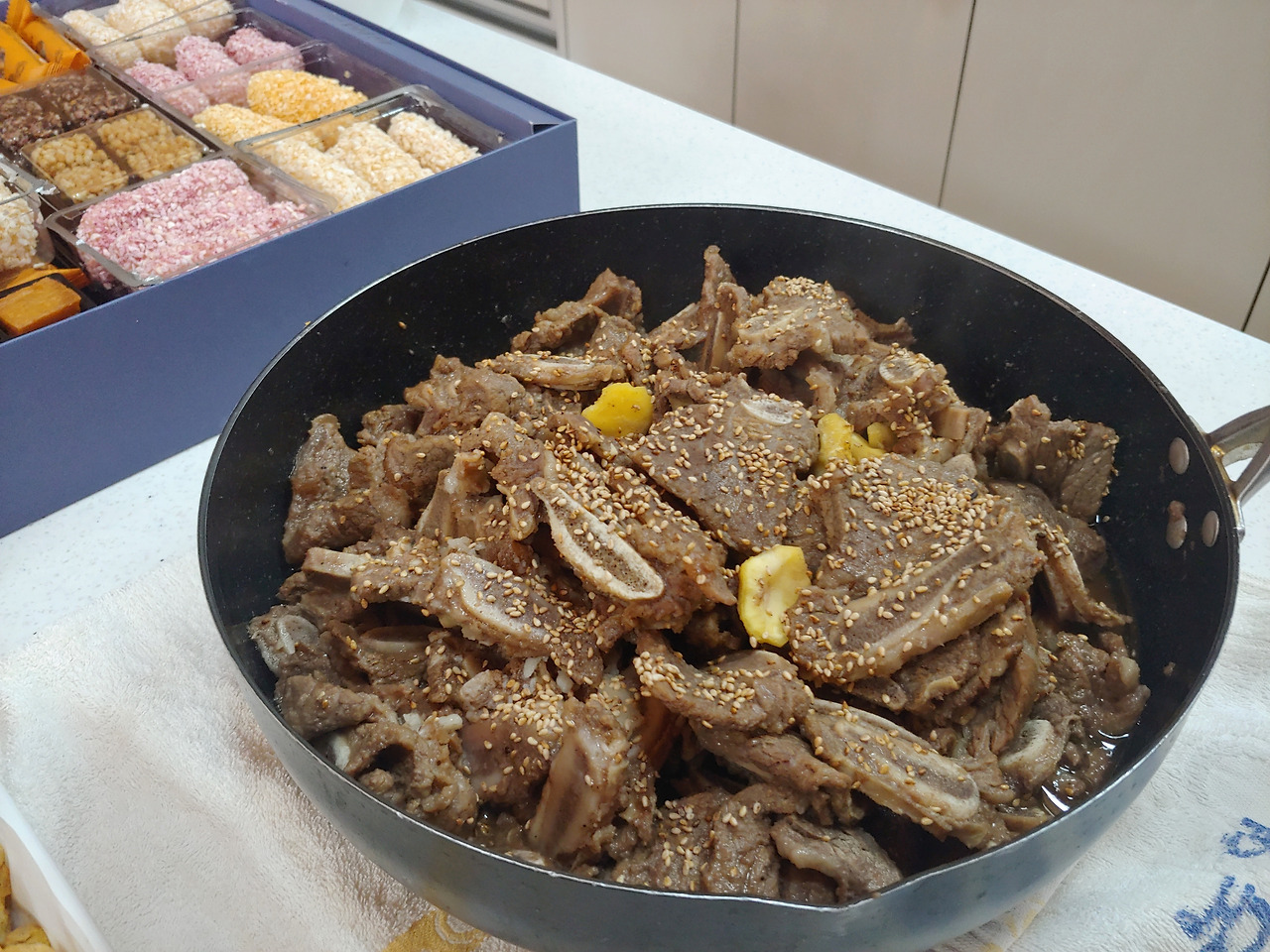명절 단골 전과 튀김류를 일단 제외하고서 양념갈비, 감자탕, 육개장, 시래깃국, 탕국, 콩나물국이 곰솥마다 가득한데 어머니는 김밥을 말 준비를 또 하고 계신다. 보름 전부터 장을 봐서 음식을 준비하셨다는 어머님 말씀에 눈과 머리가 바쁘게 굴러갔다. 도대체 왜요? 남편이 4형제이긴 하지만 그래도 식구들 다 모여봤자 9명인데. 아 맞다, 작은아버님들 가솔까지 합하면 8명 추가. 그래도 이상하다. 시댁 냉장고와 다용도실에 쌓인 식재료들은 아무리 봐도 성인 16인 분 기준이 아니다.