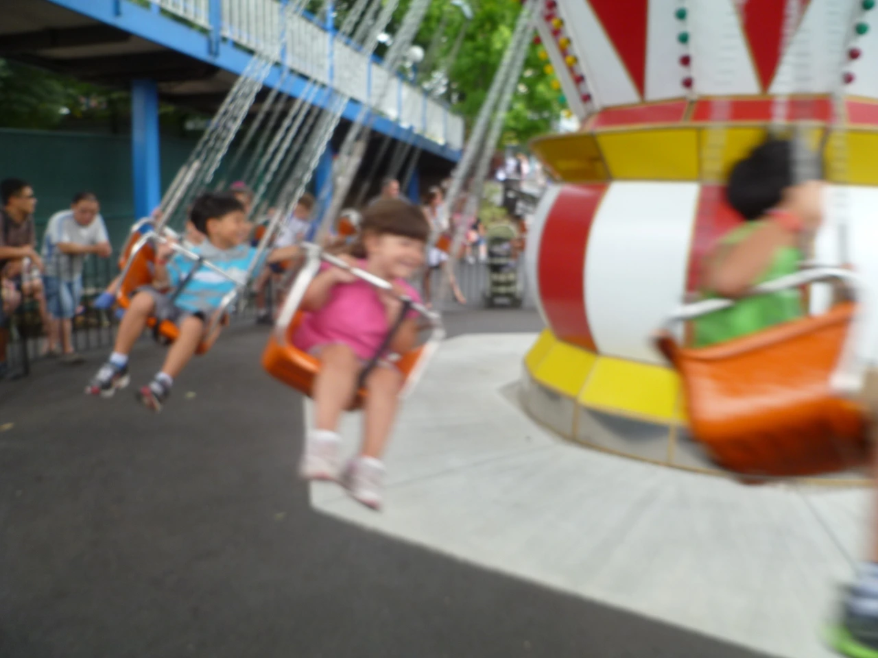 또 다른 놀이기구는 두 사람씩 탄다. 그네 같이 빙글빙글 돌지만, 방향을 바꾸는 키가 하나 더 추가되어 있다(Frontier Flyers). 돌면서 방향까지 바뀌니 더 어지럽다. 어른들이 어지러워할수록 아이들은 더 신나 했다. 아주 어린아이용이 아니면 대부분 보호자가 함께 탑승해야 하는데, 이 놀이기구는 지금 생각만 했는데도 울렁거리고 어지러울 지경이다. 막내 출산 후, 많이 약해졌다.