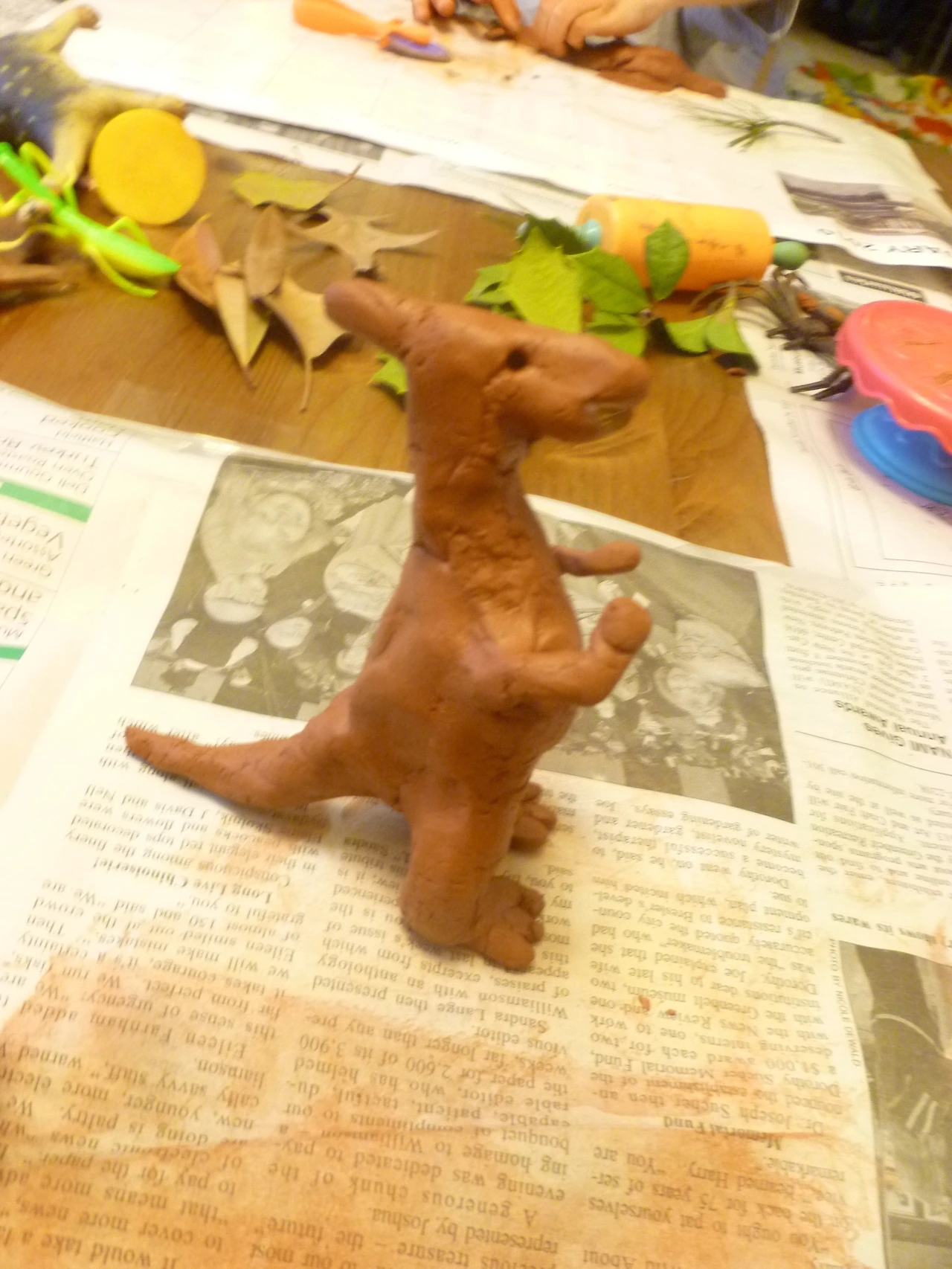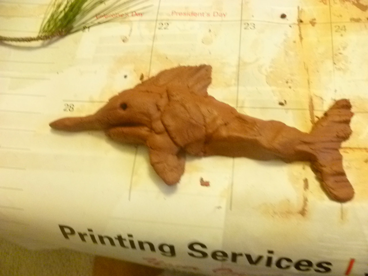 부드러운 흙을 조물락조물락 거리며 막내는 음영판을 이용해 찍었고 둘째는 청새치를 만들었다. 역시 첫째는 3차원으로 공룡을 일으켜 세워 입체적으로 만들었다. 연령에 따라 다양한 것들을 자유롭게 만들 수 있었다.