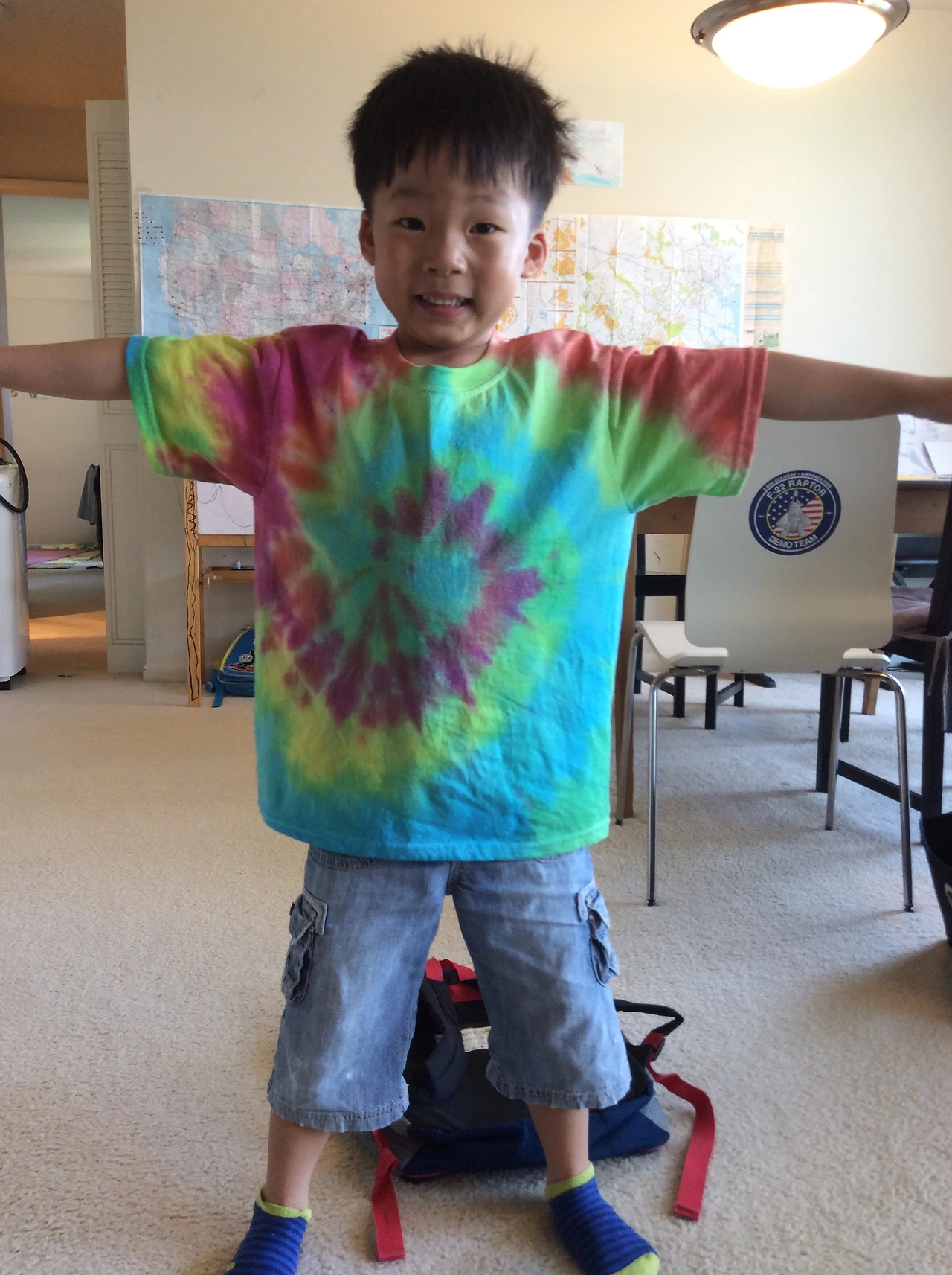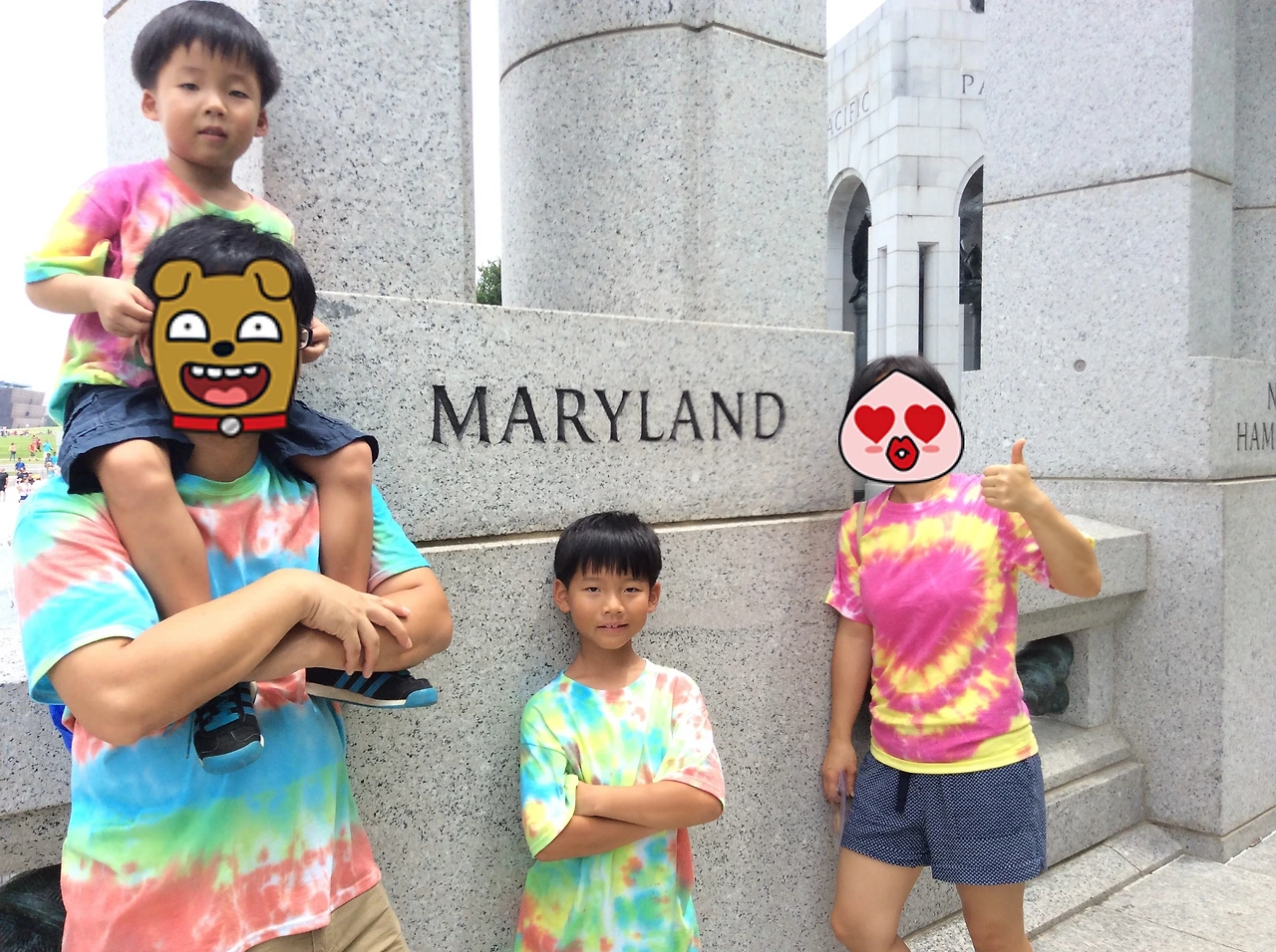 우리 동네 그린벨트는 타이다이(홀치기염색)가 유명한 곳이라고 뒤늦게 알았다. 귀국을 앞두고 그린벨트에서 5년을 살았던 걸 기념하기 위해서 타이다이를 하기로 했다. 우리는 JO-ANN(조안)에서 식구 수대로 무지 티셔츠와 타이타이 키트를 샀다. 만들고 싶은 모양이나 스타일 대로 티셔츠를 끈으로 꽁꽁 묶었다. 다양한 방법이 있었다. 그리고 원하는 염색 물감을 원하는 방식으로 묻혀 타이타이 티셔츠를 완성했다.