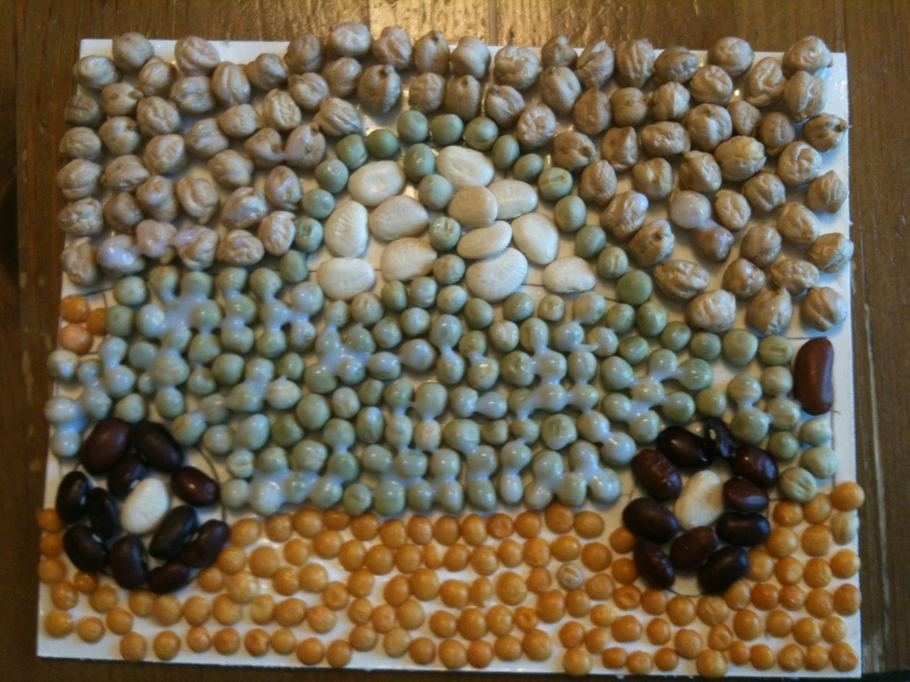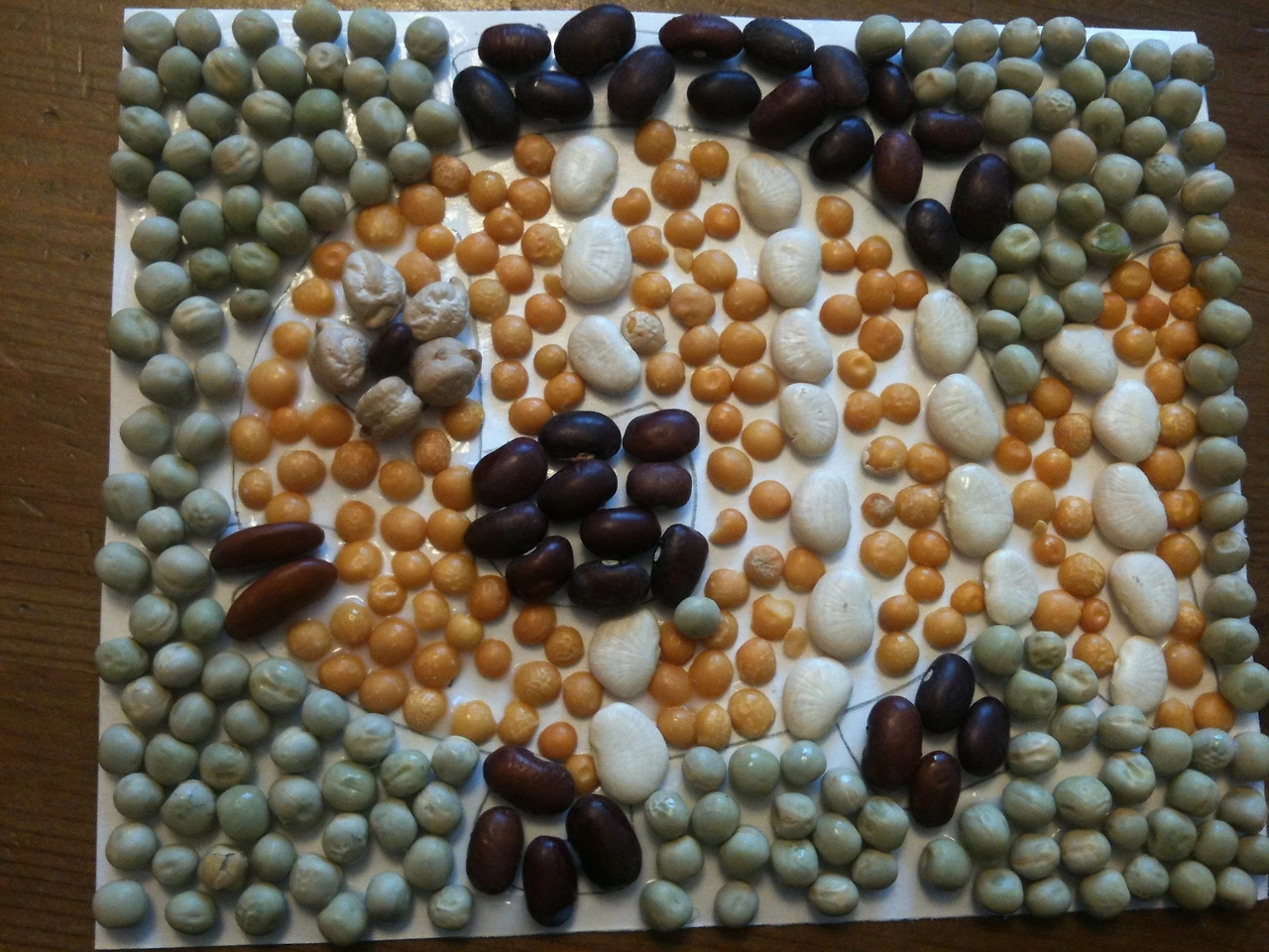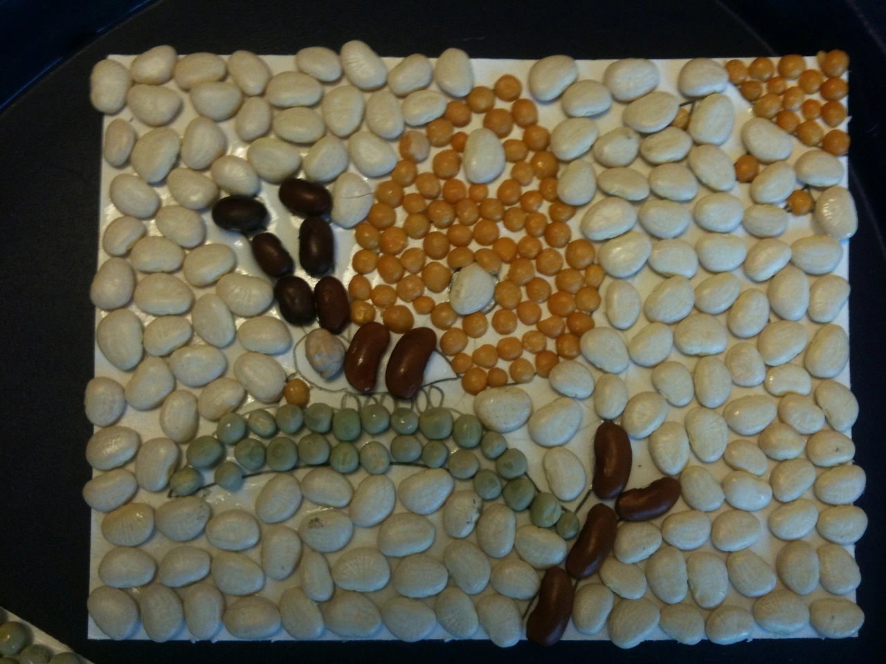 윅(WIC)으로 받은 콩이 많았다. 밥에 넣어 먹고 팥밥이나 팥칼국수를 만들어 먹어도 남았다. 그래서 다양한 색깔의 콩을 이용해 모자이크 그림을 그려보기로 했다.