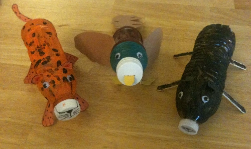 우리 아이들은 동물을 좋아한다. 좋아한다고 다 만들 수는 없다. 무슨 동물을 만들 것인지 각자 선택을 해야 한다. 아크릴 물감으로 색칠하고 눈과 다리를 붙이니 치타, 청둥오리, 퓨마가 모습을 드러냈다. 나는 등에 구멍을 뚫어 동전을 모으는 걸 알려 주었다. 주둥이 뚜껑으로 동전을 뺄 수 있게 했다.