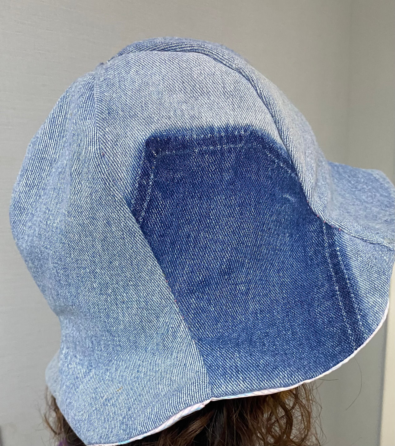 원하는 색깔의 청바지를 골라 모자 패턴을 그리고 잘라서 하나하나 꿰매면 된다. 바느질 선들이 보이지 않게 안감도 넣는다. 안감은 버려진 와이셔츠나 남방을 이용했다. 내 앞에 있던 밤색 체크무늬 긴 남방은 자르기에 너무 멀쩡하고 새것이었다.