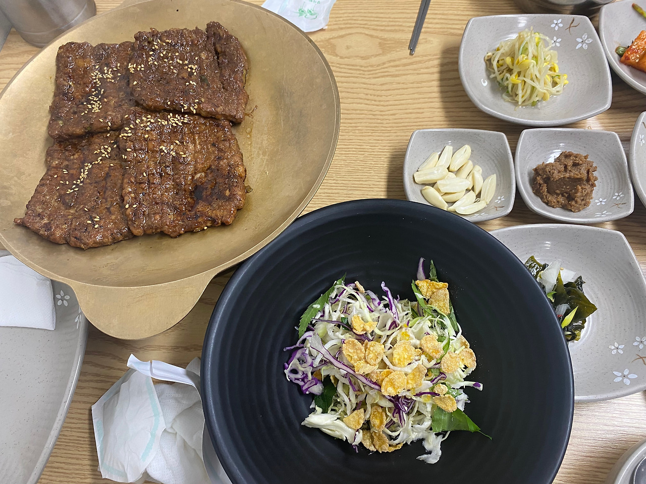 하지만, 결국 오전에 출근해서 4시까지 일하고 오후 늦게 출발했다. 내 고향 유명한 떡갈비 식당으로 바로 달려갔다. 겨우 저녁 시간을 맞췄다. 이미 식사 중이신 어른들께 인사를 드리고 함께 저녁을 먹었다. 차를 못 타시는 고모할머니를 위해 엄마는 근처 한옥 독채를 빌리셨단다. 어릴 적 내가 놀았던 그 골목길에 숙소가 있어 잠시 놀랐다. 남매계 회의에도 참석했다. 자랑스러운 우리 집안 모임의 역사를 남편에게 보여주고 싶었다!