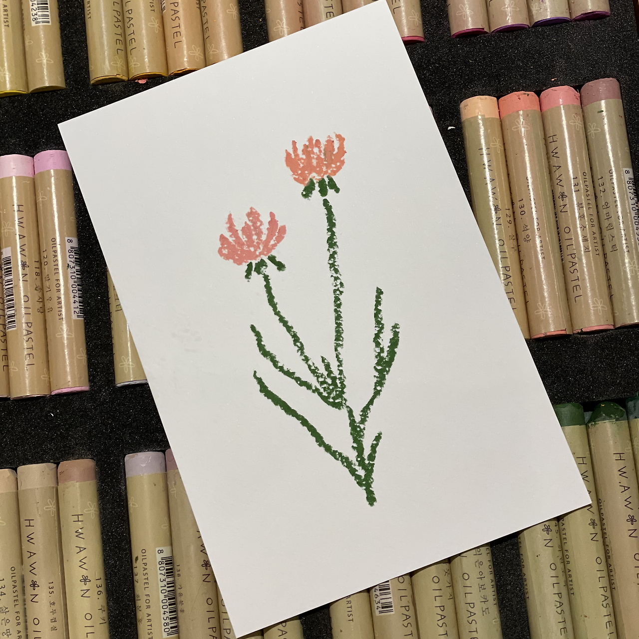 오늘도 가녀린 꽃 한 송이. 생각보다 “가녀린” 줄기의 느낌이 아주 잘 표현되어서 기분이 좋았다. 핑크 토끼풀~